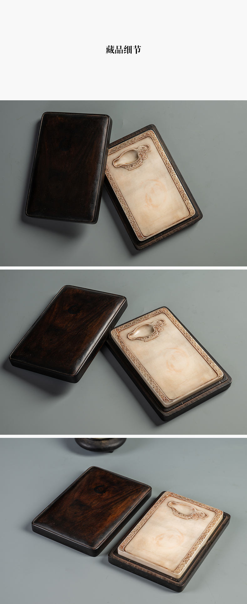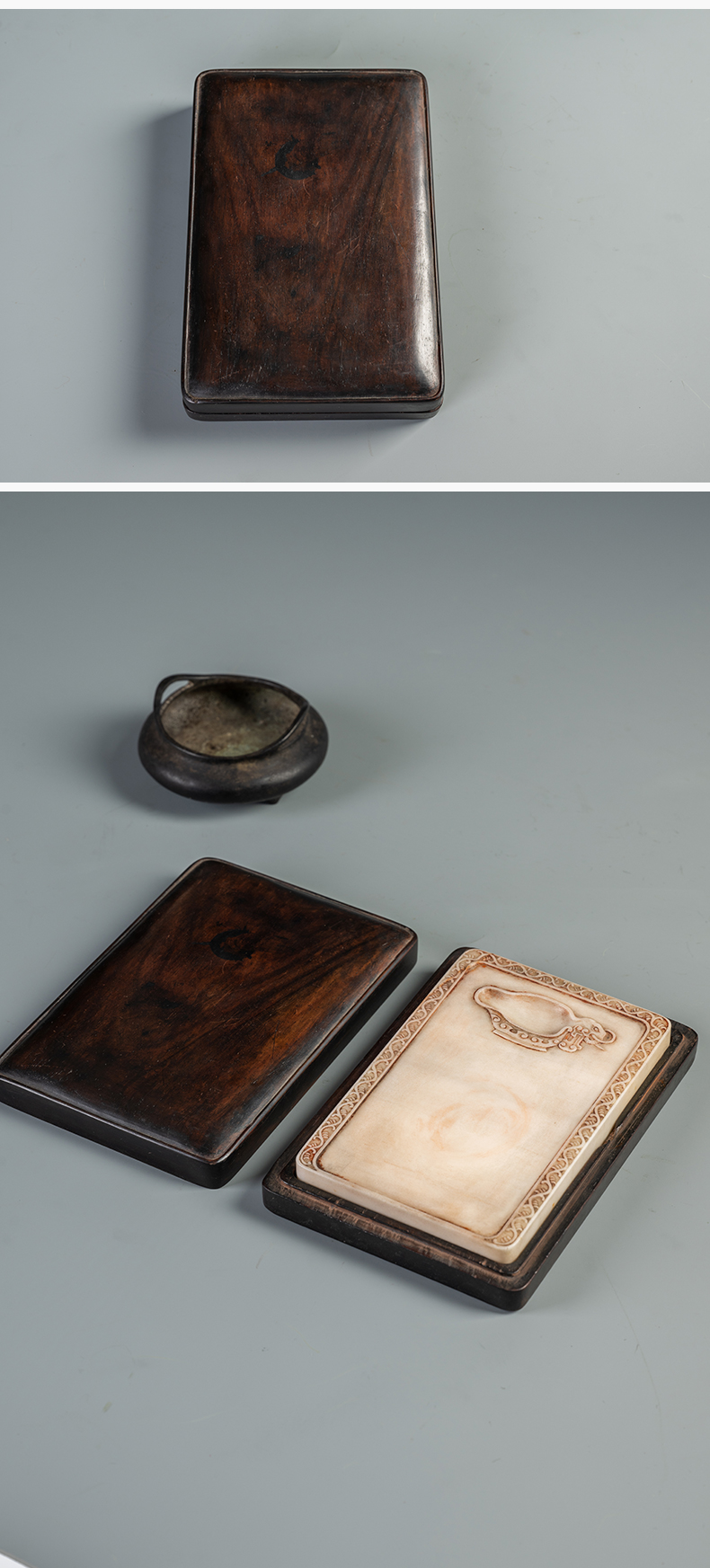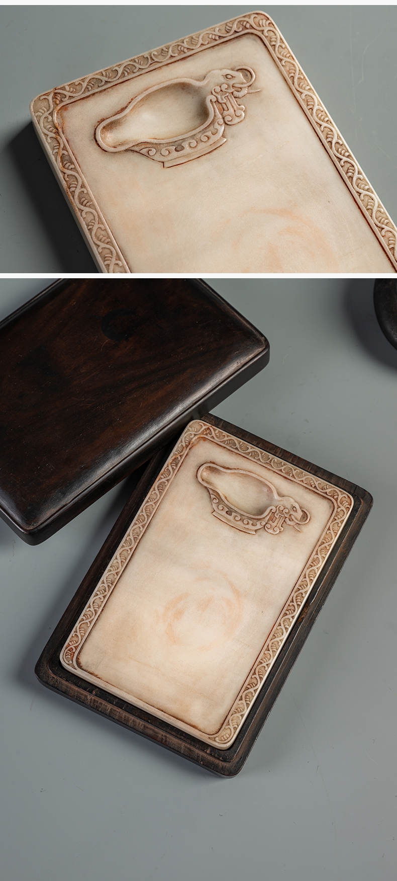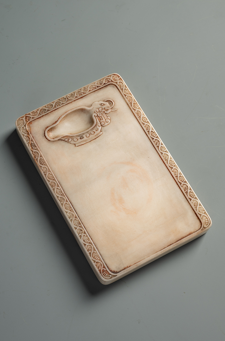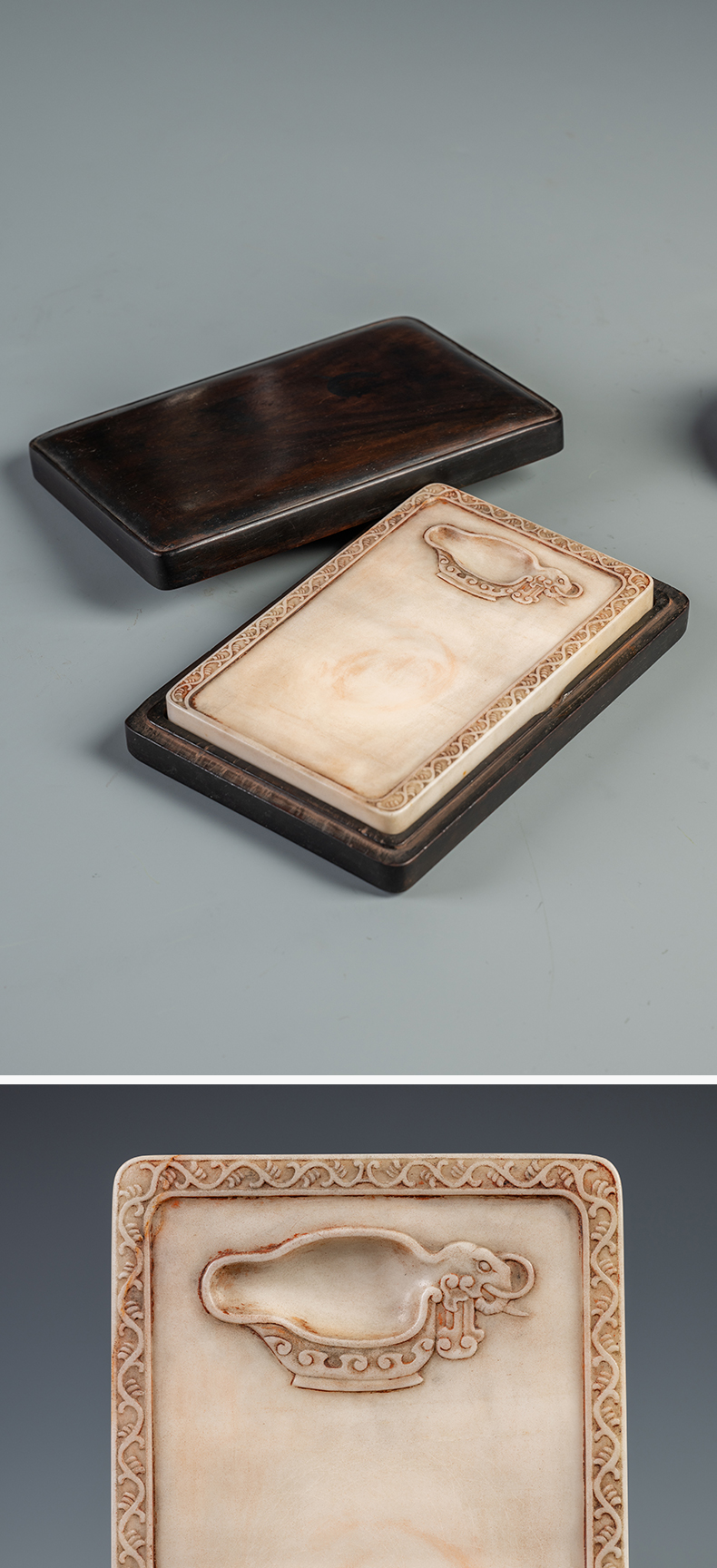 清 瑞芝草堂铭诗文白端砚(红木砚盒)