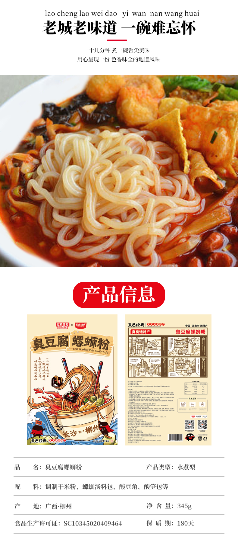 【周三会员日限时4.3折 5袋装】黑色经典臭豆腐螺蛳粉345g*5袋 限时疯抢囤货