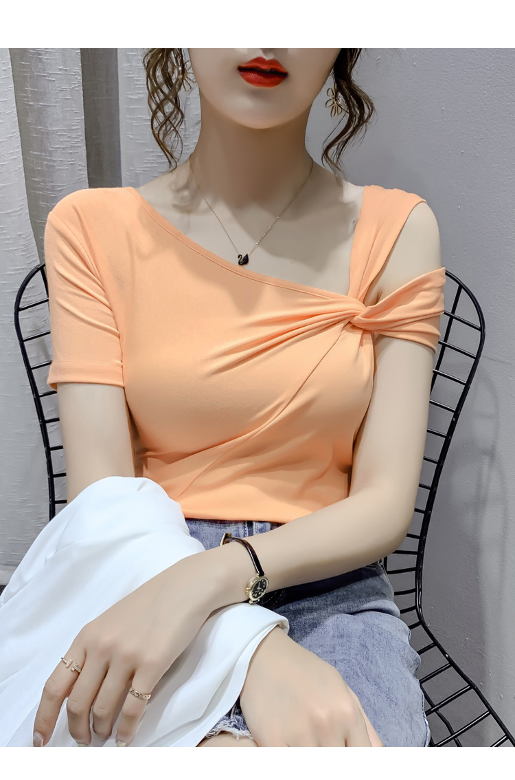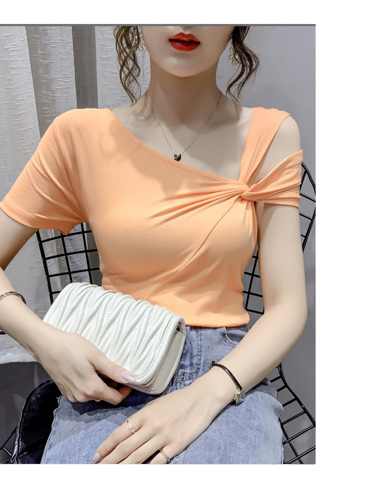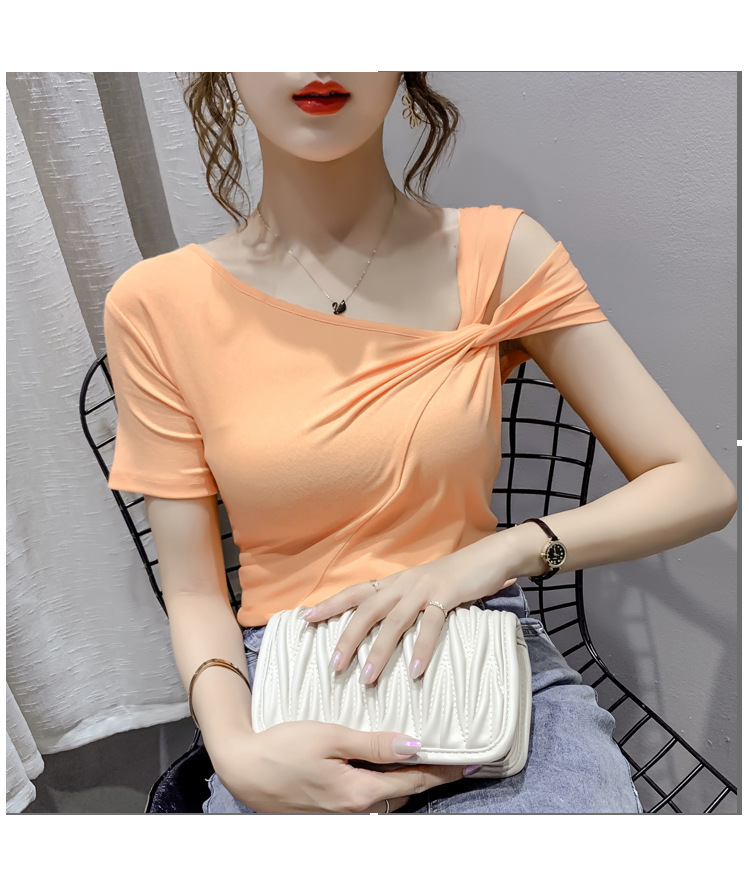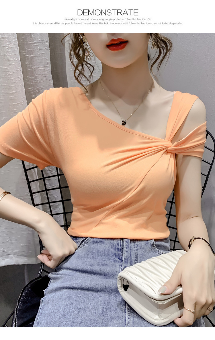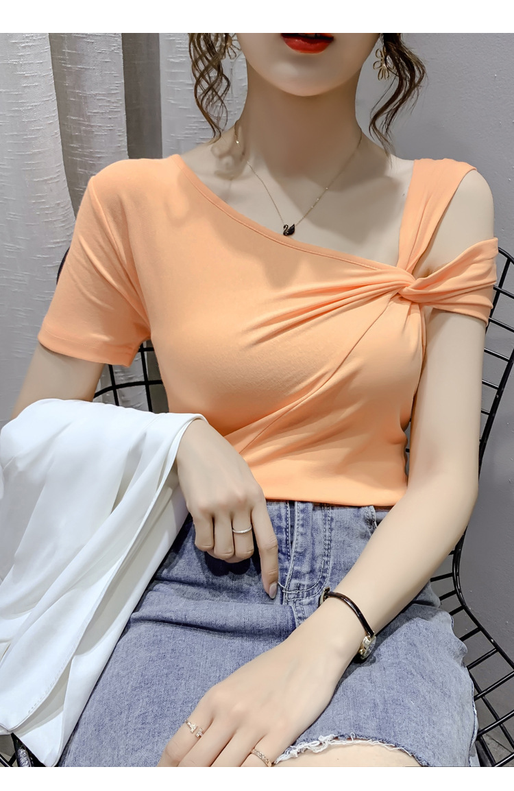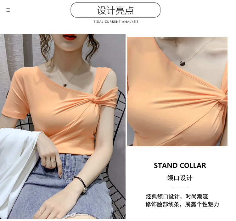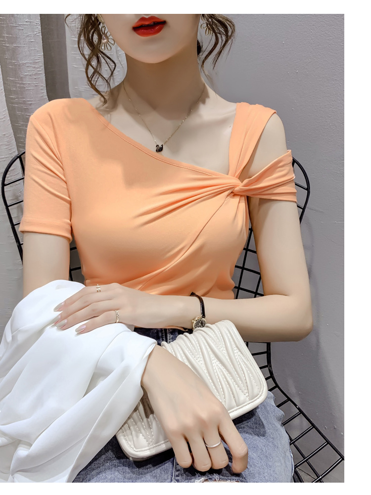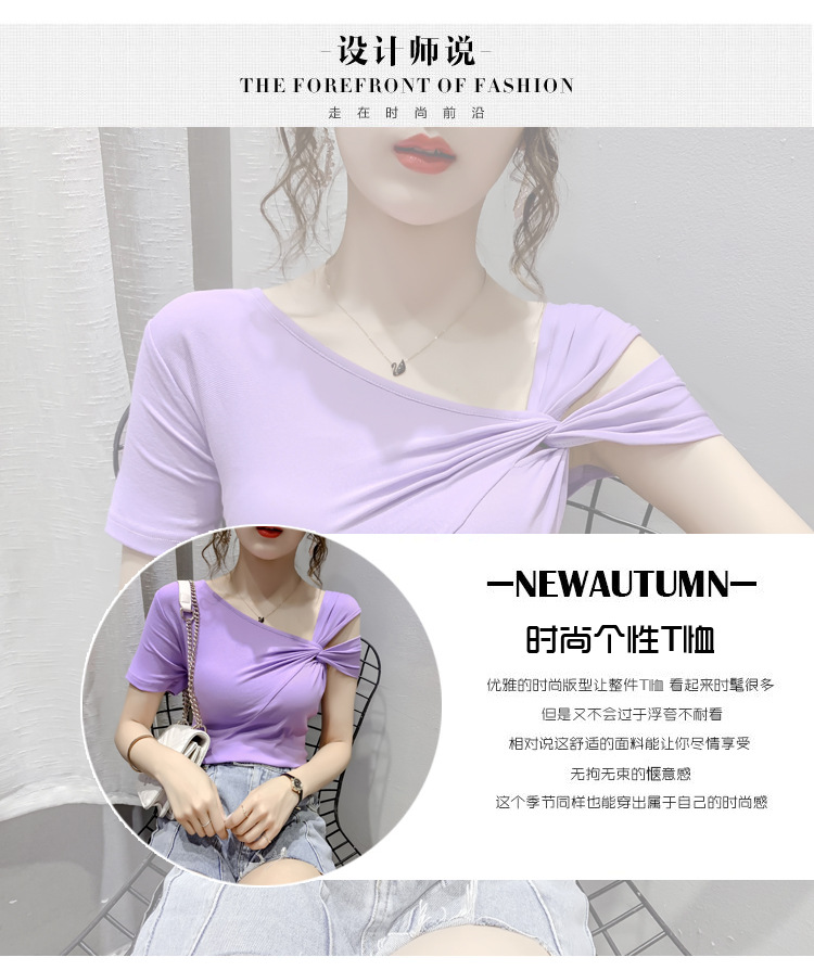 辣色短袖T恤设计感小众方领泡泡袖上衣MZ800541