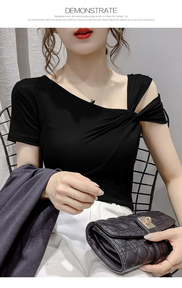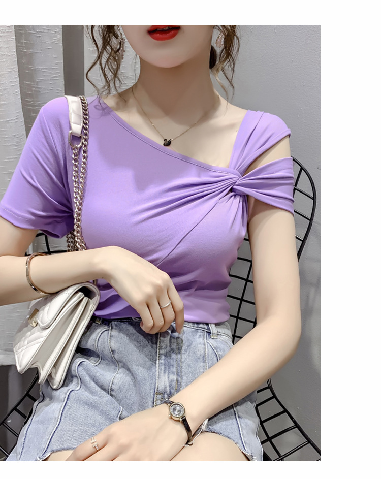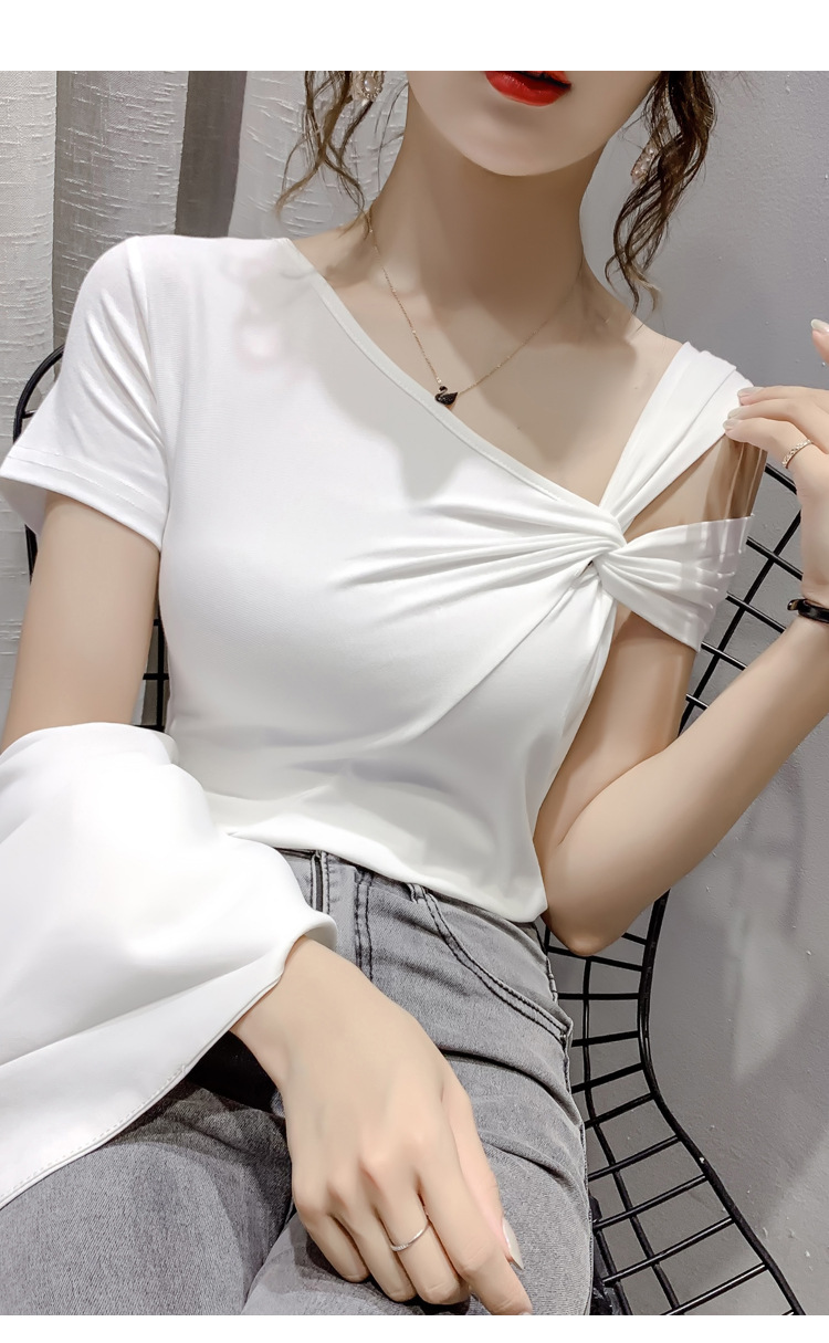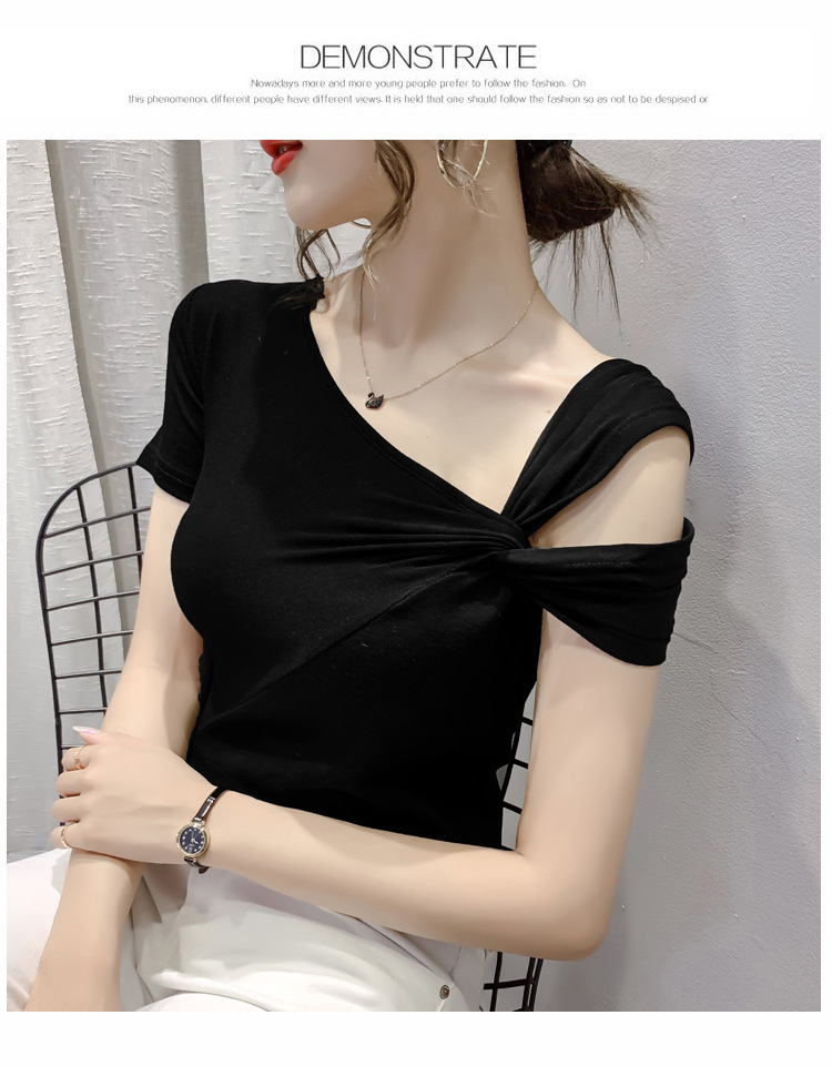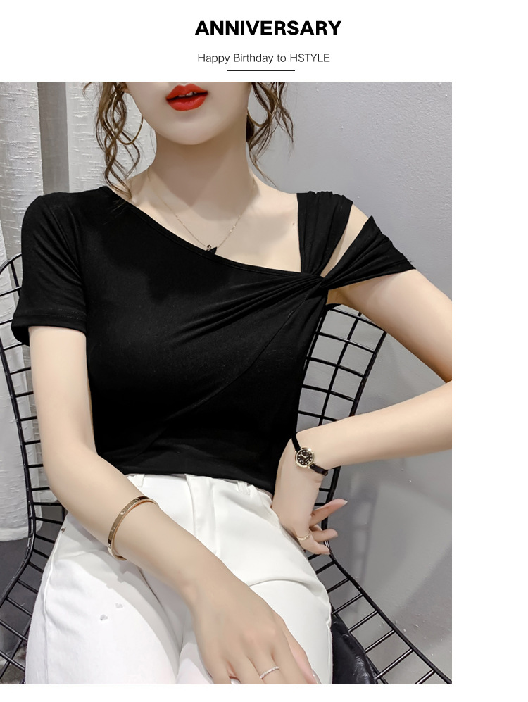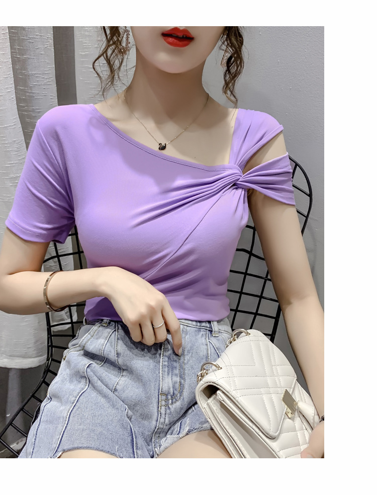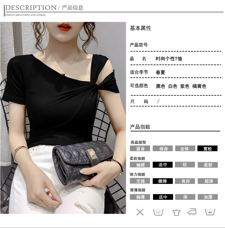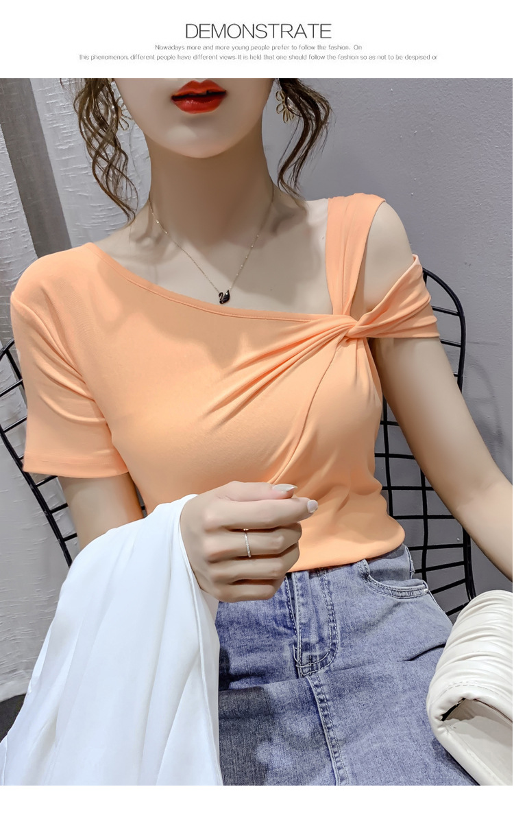 辣色短袖T恤设计感小众方领泡泡袖上衣MZ800541