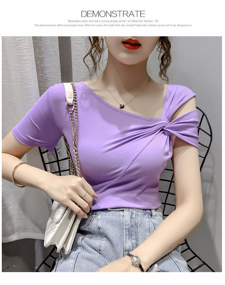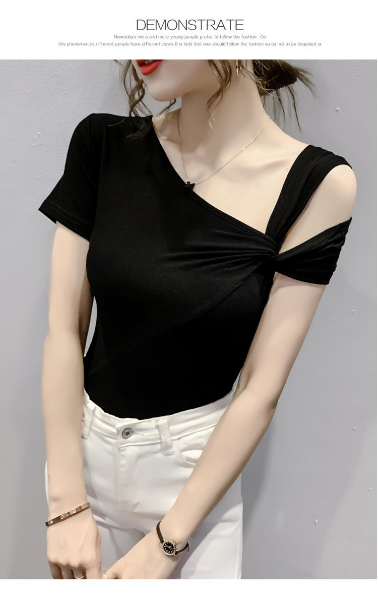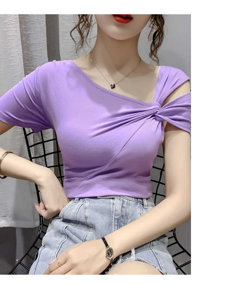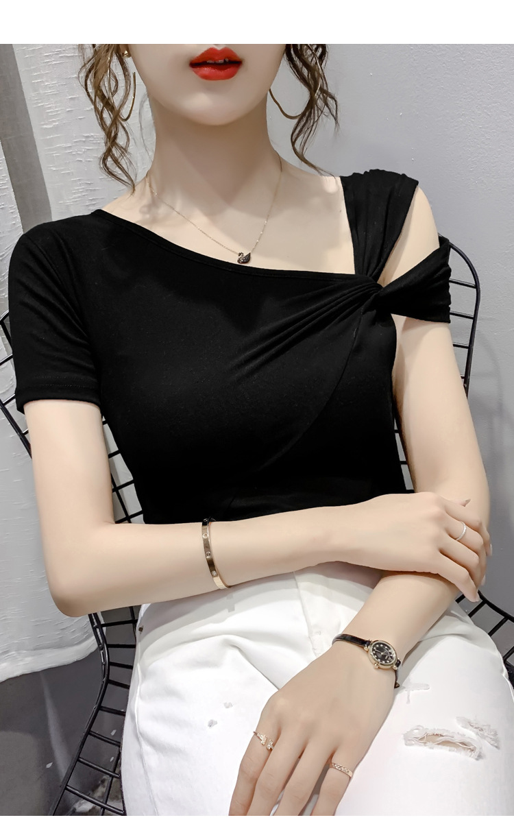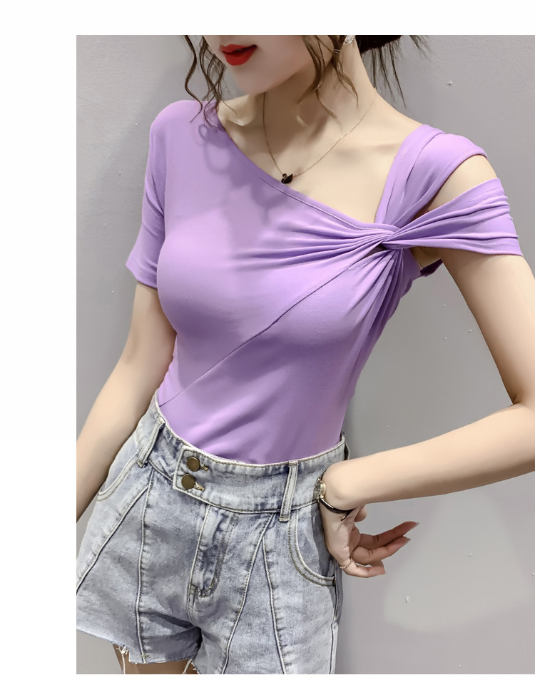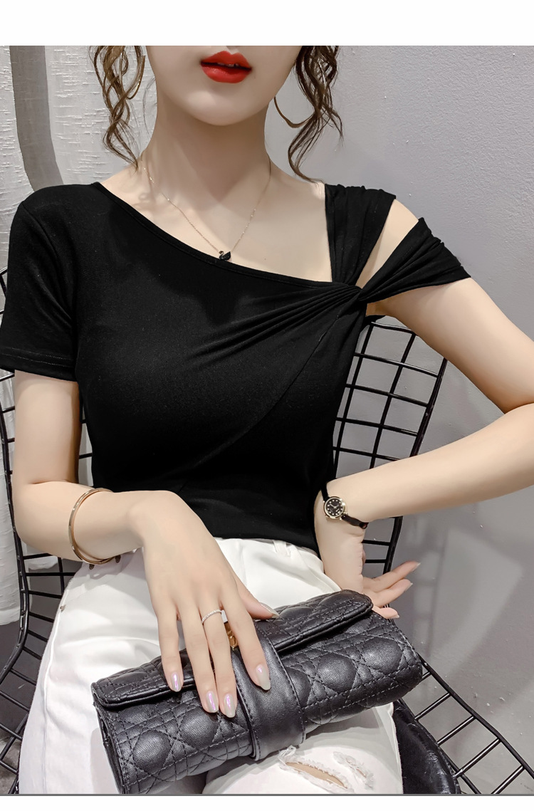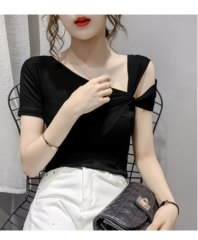 辣色短袖T恤设计感小众方领泡泡袖上衣MZ800541