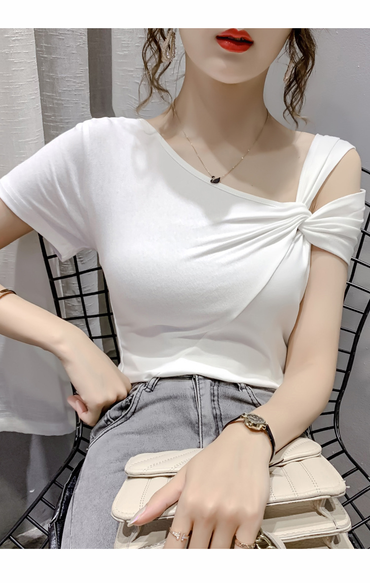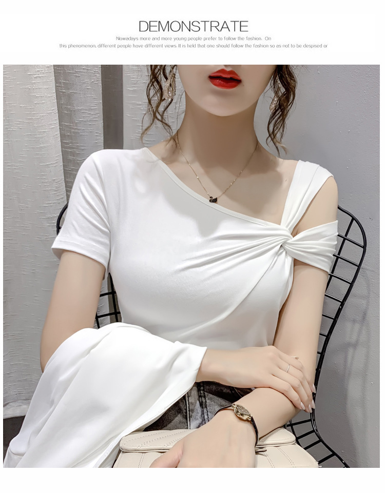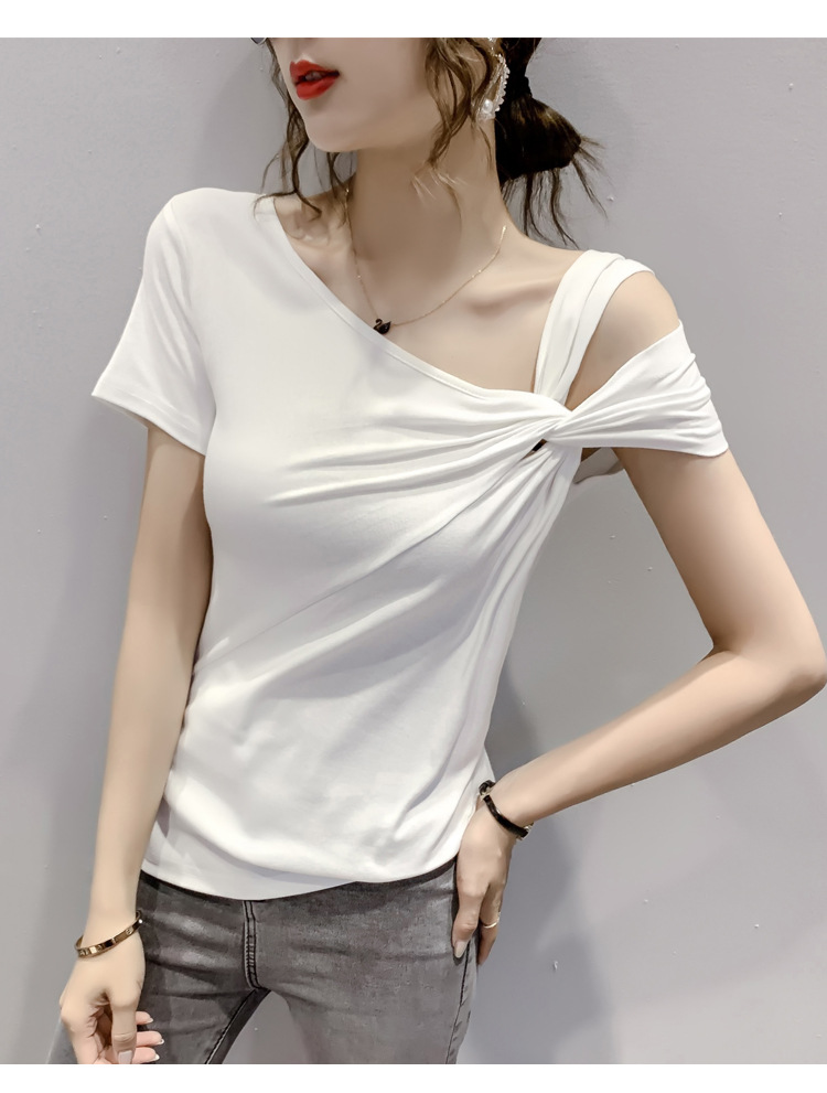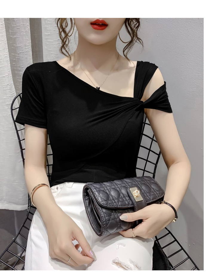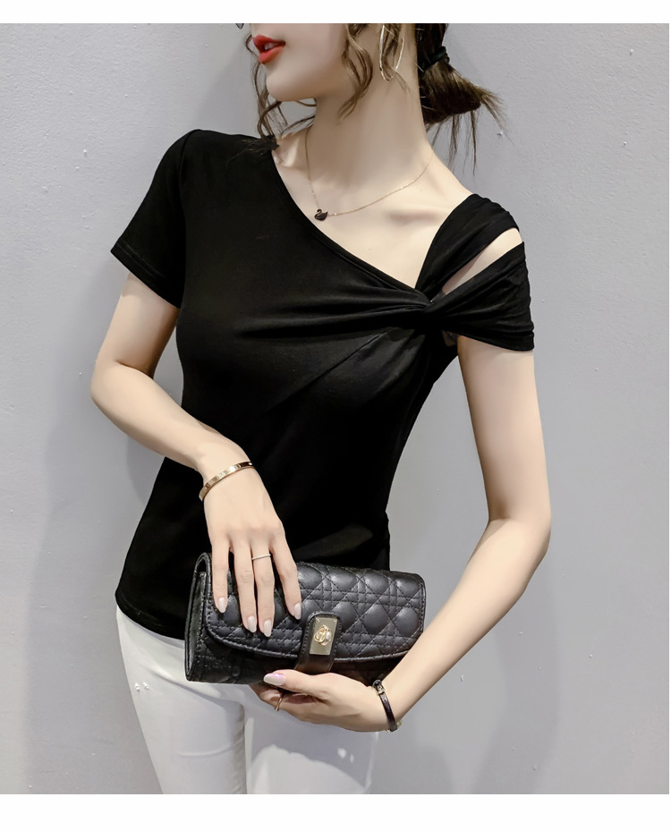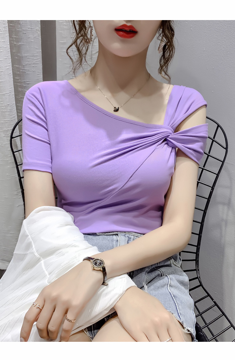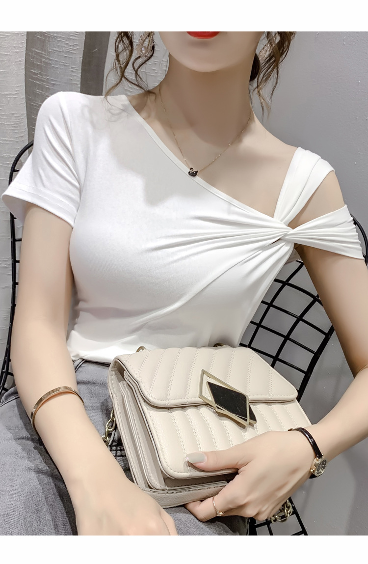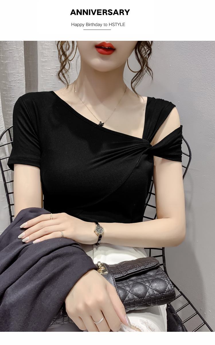 辣色短袖T恤设计感小众方领泡泡袖上衣MZ800541