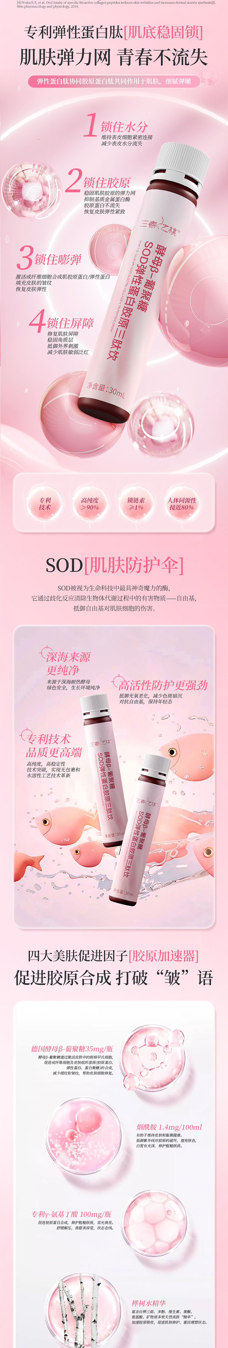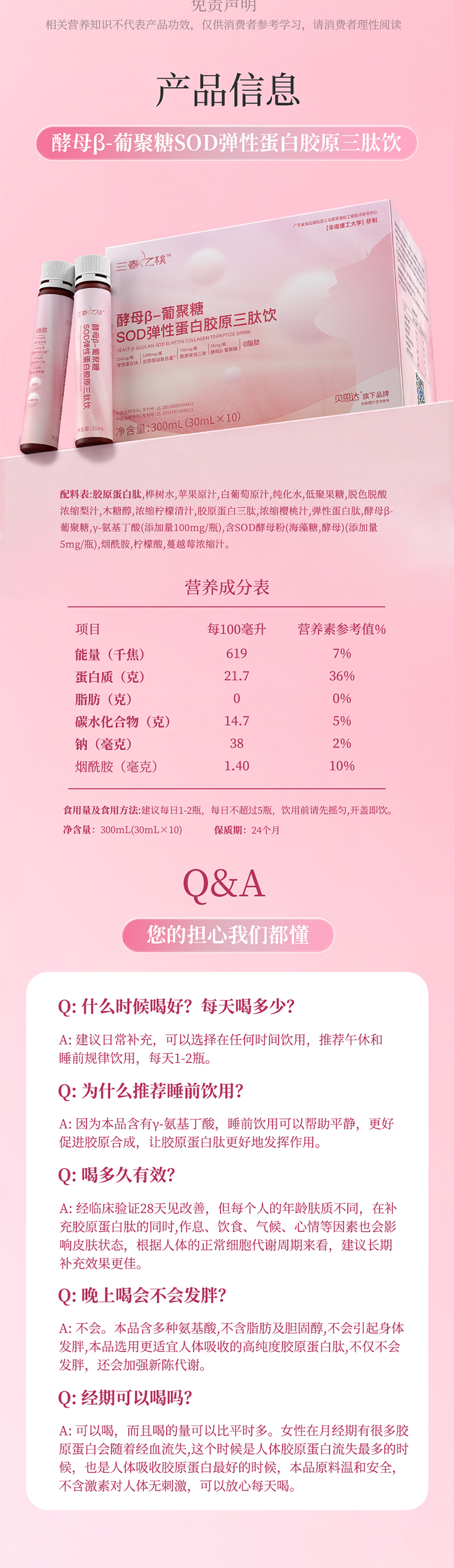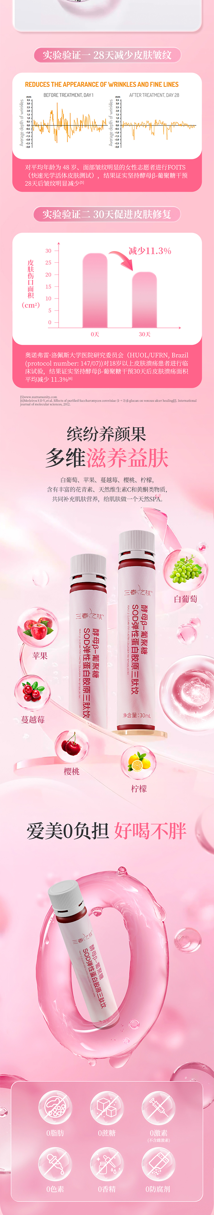 三春之桃酵母β-葡聚糖SOD弹性蛋白胶原三肽饮30ml*10支