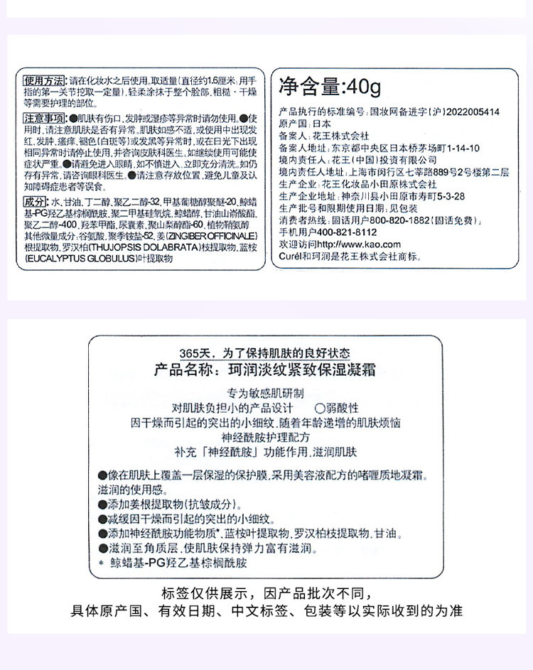 珂润淡纹紧致凝霜40g/盒 效期2027年2月