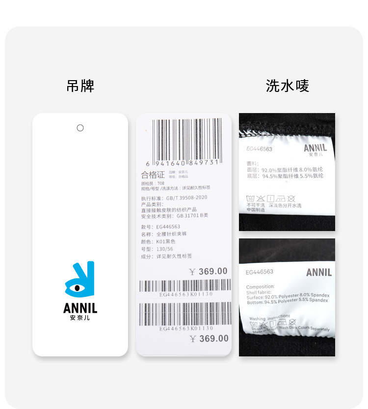 女童全腰针织夹裤冬季新款安奈儿童装EG446563