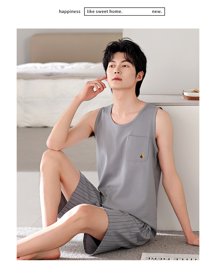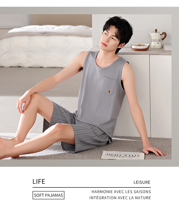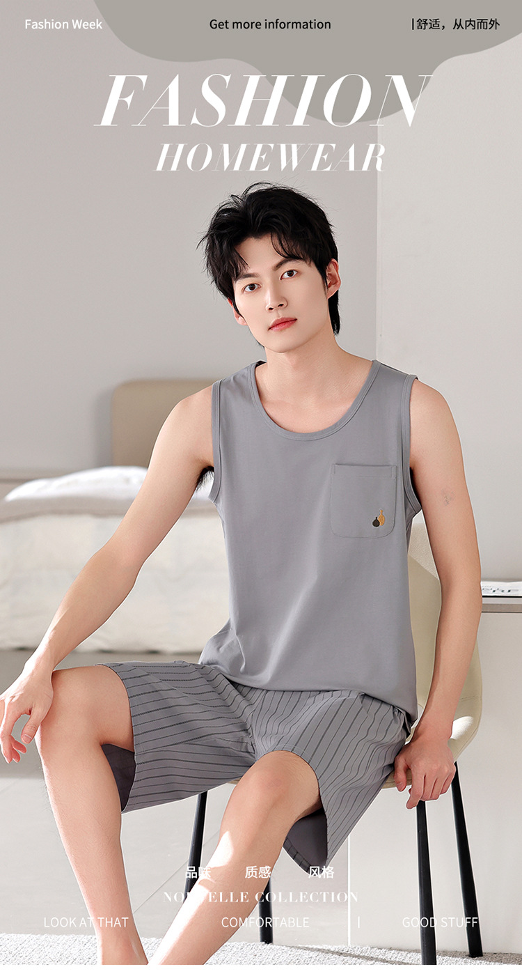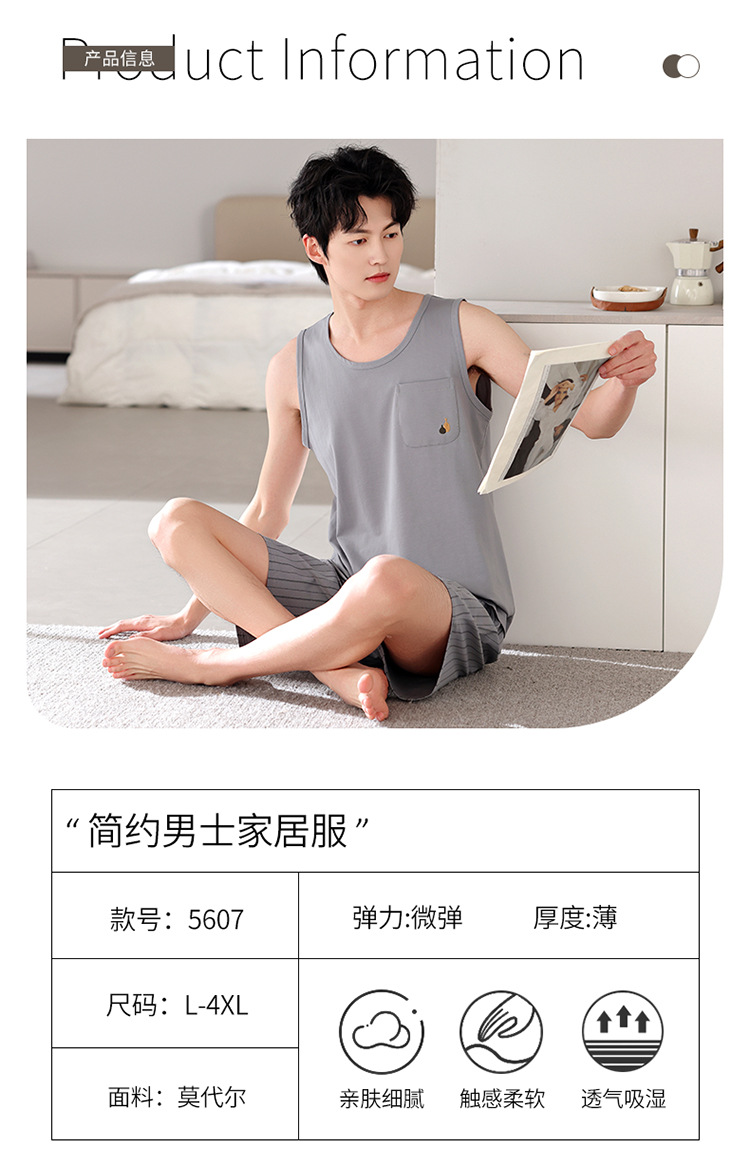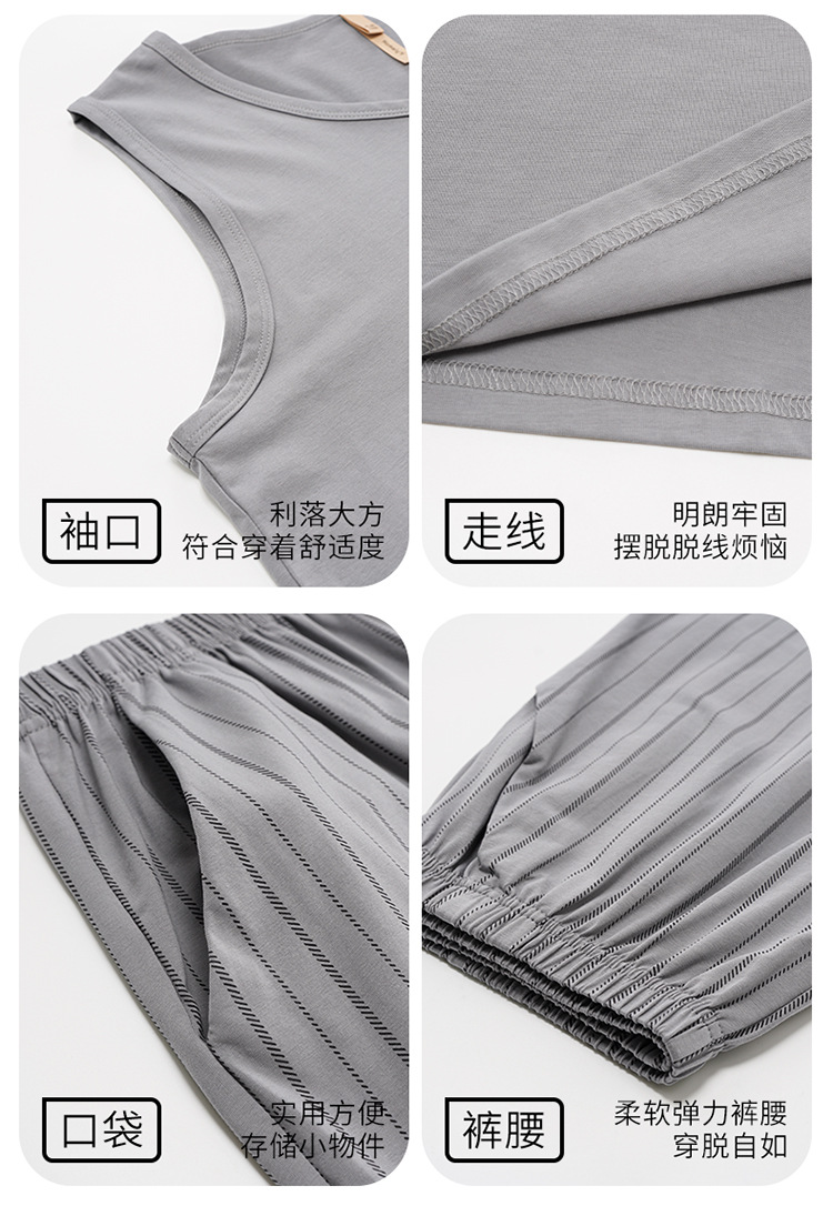 雀说 男士睡衣夏季莫代尔薄款无袖背心家居服
