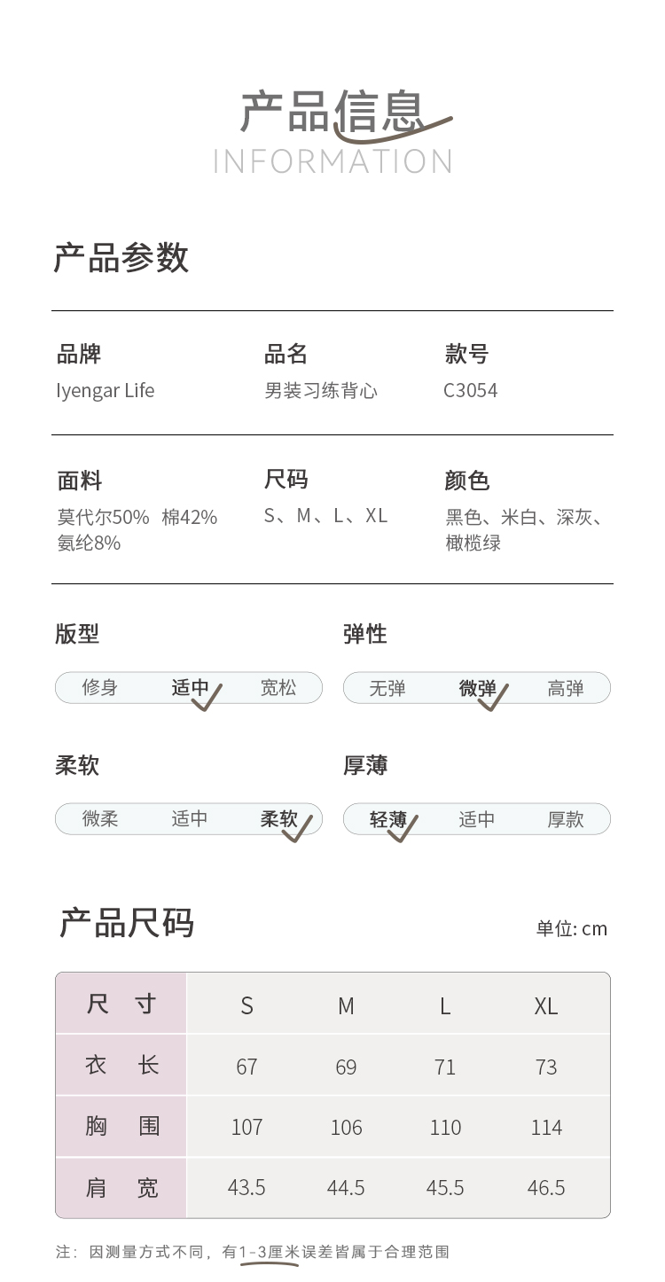 艾扬格 life C3054男装习练瑜伽运动背心 无袖T恤 凉感舒爽 柔软垂顺