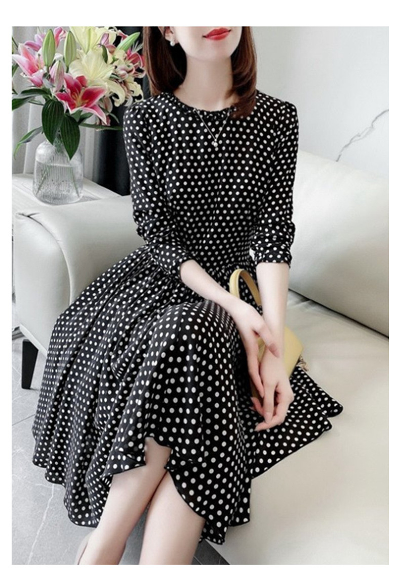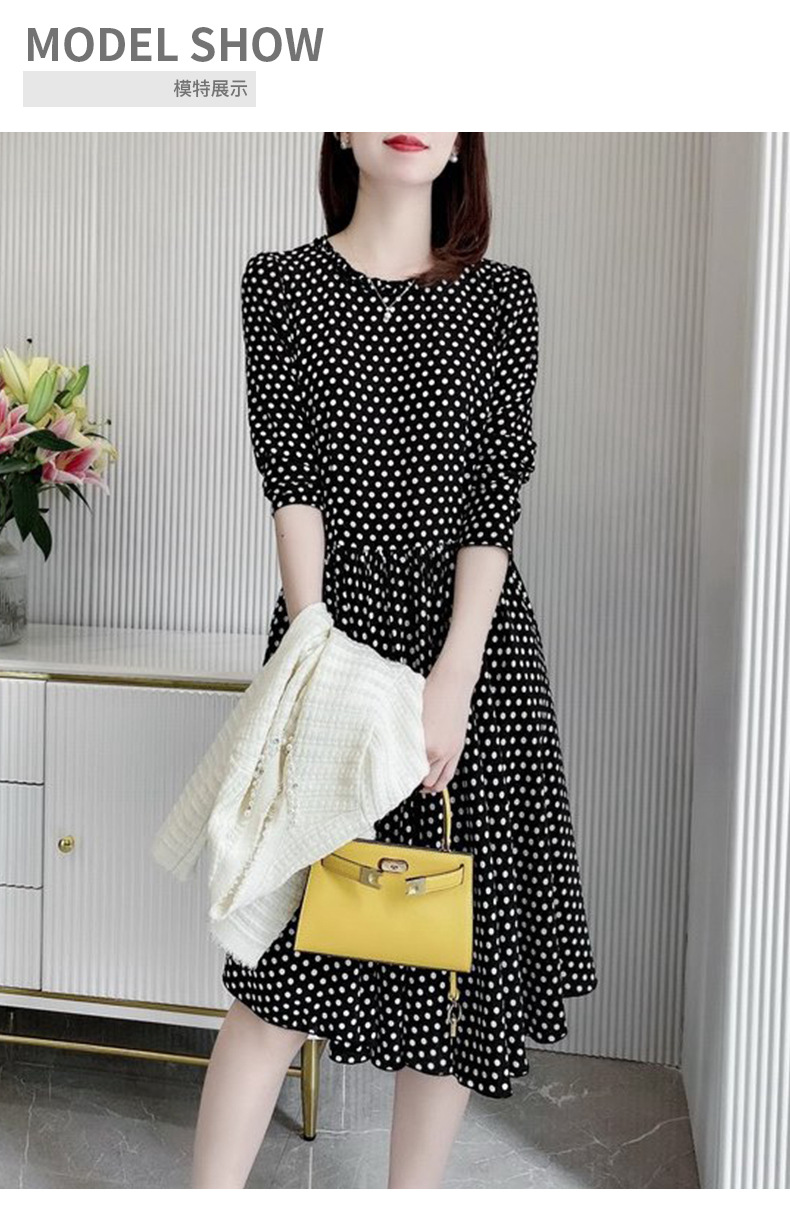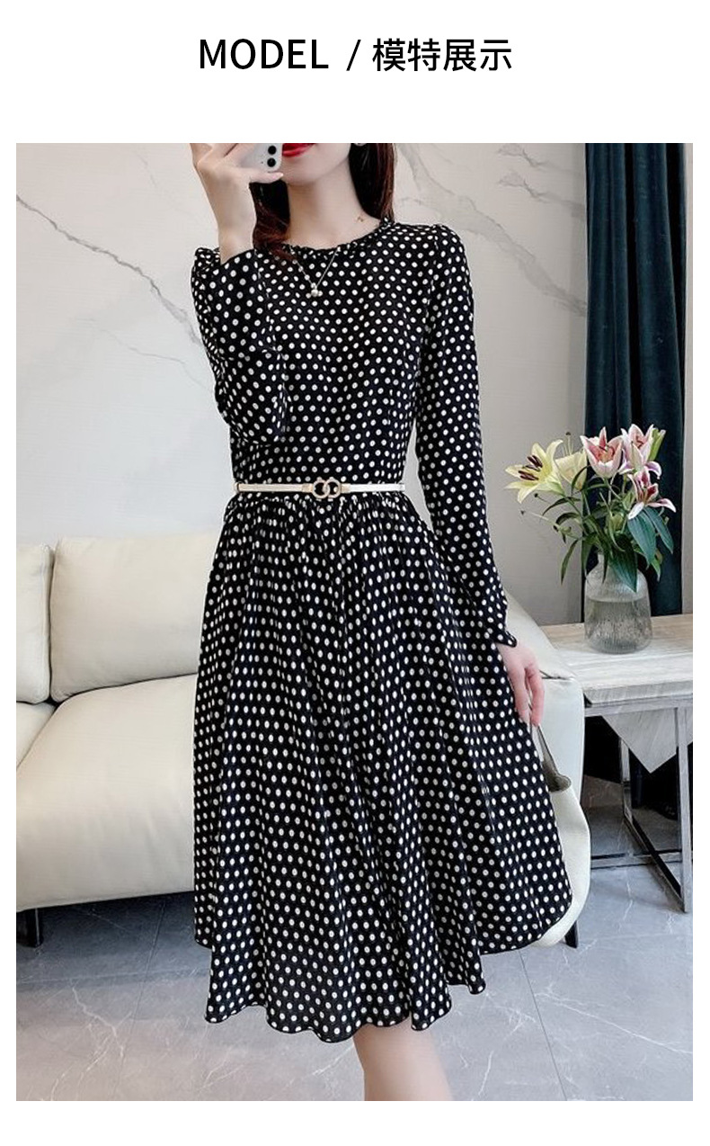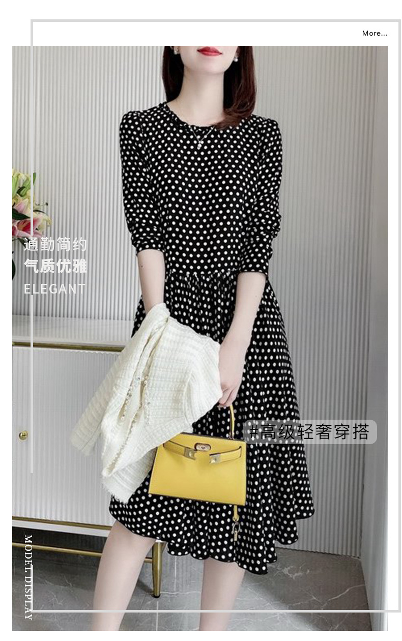 丁摩 设计感高端波点连衣裙女秋季新款圆领长袖气质显瘦裙子5ZF-15458