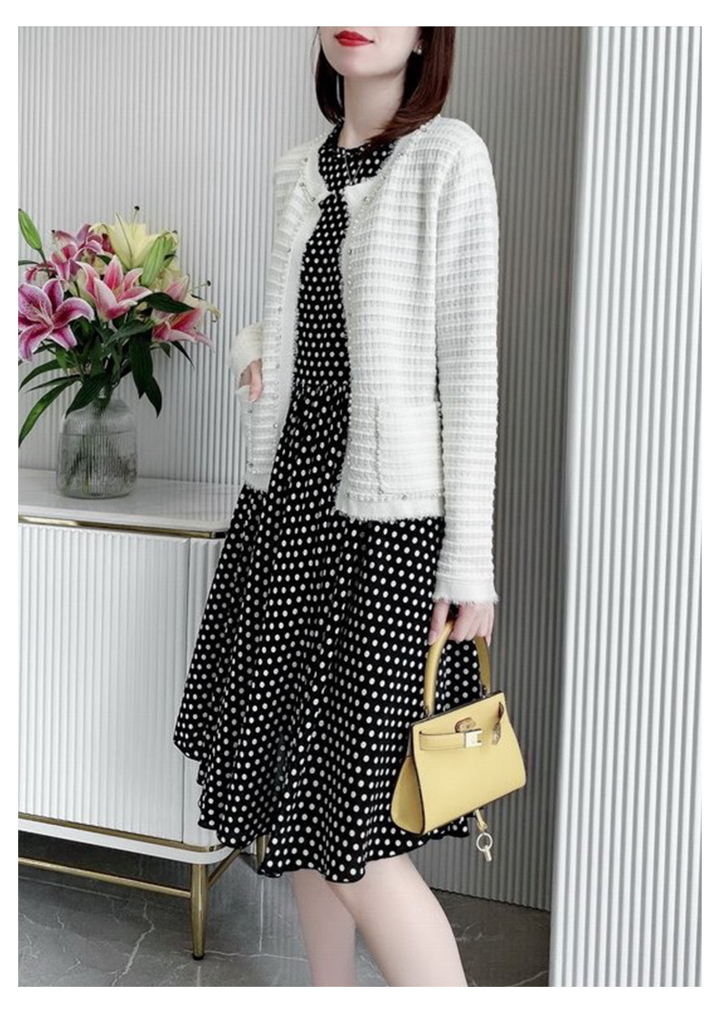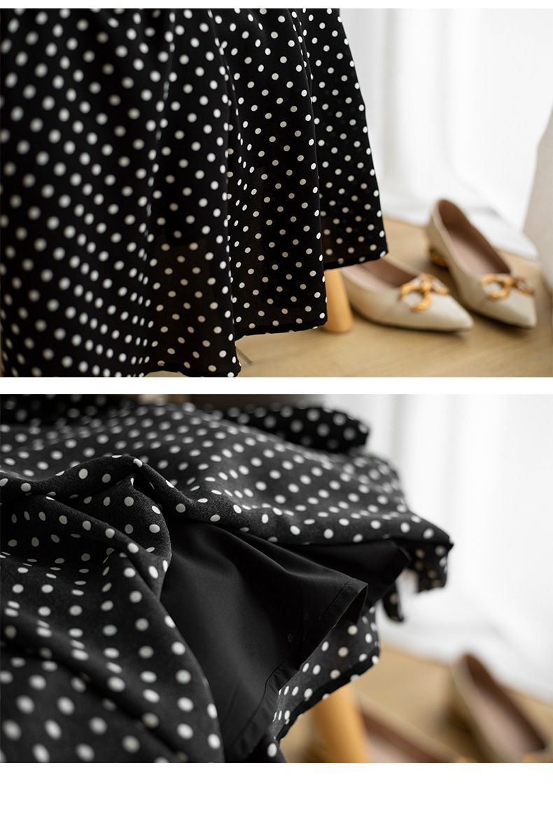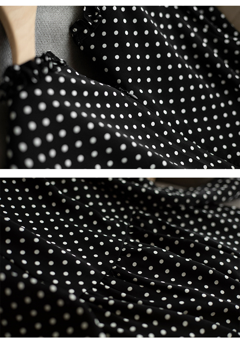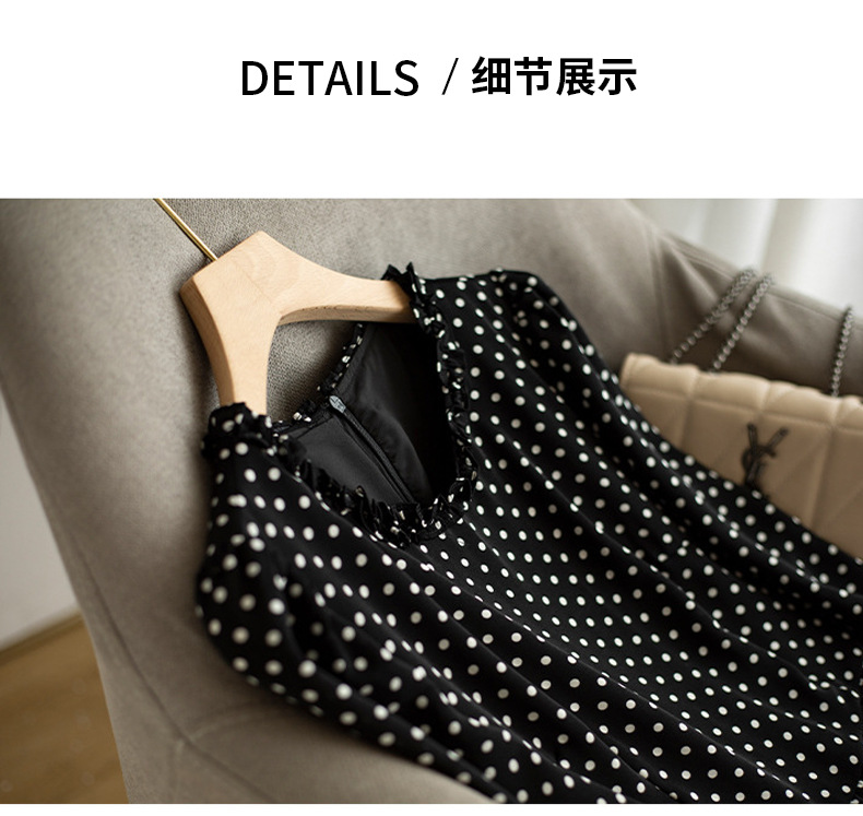 丁摩 设计感高端波点连衣裙女秋季新款圆领长袖气质显瘦裙子5ZF-15458