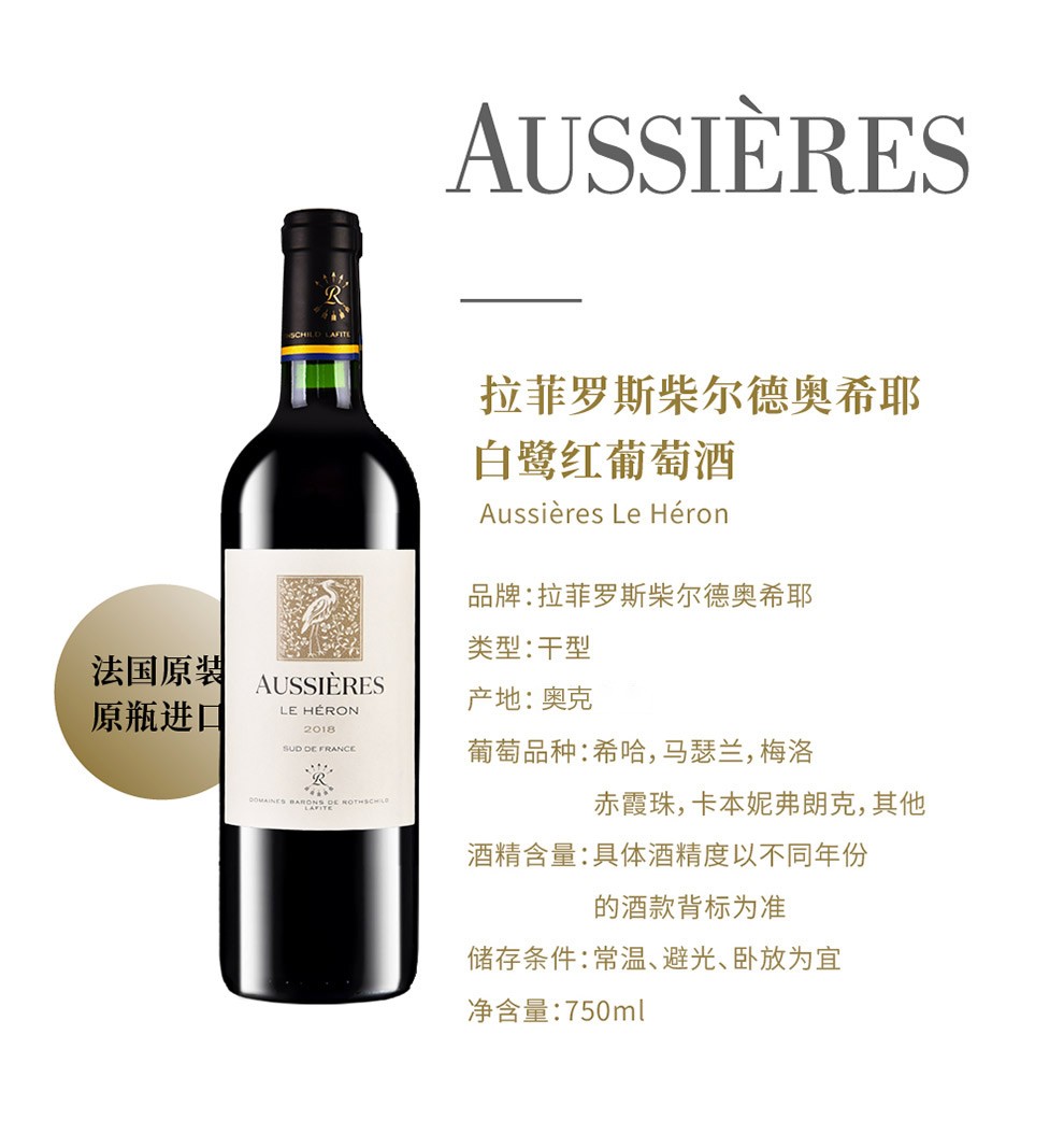 法国拉菲罗斯柴尔德奥希耶白鹭红葡萄酒750ml