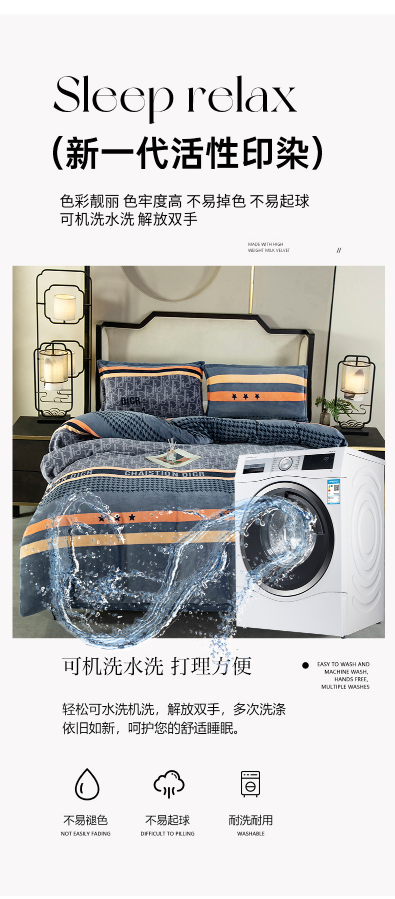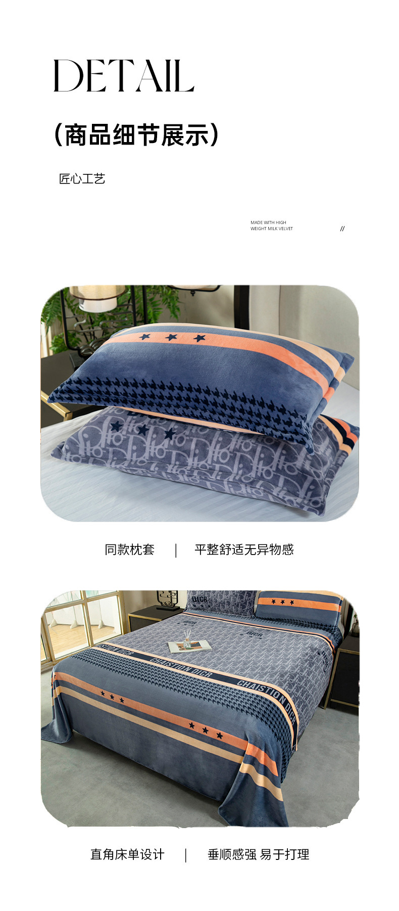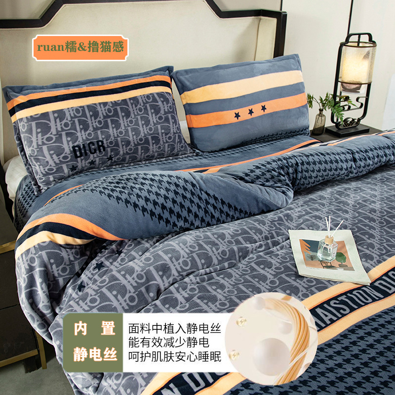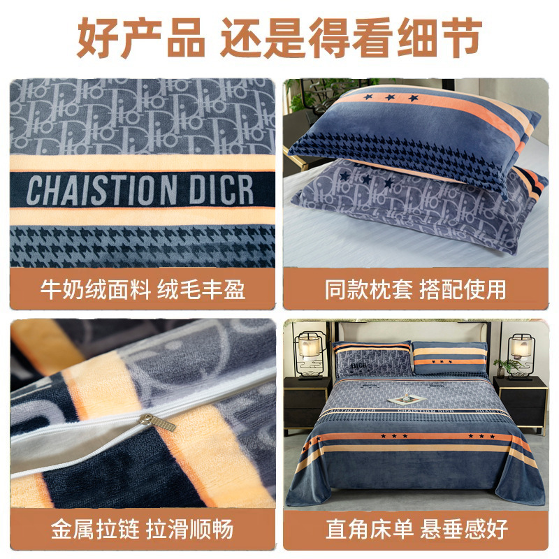 冬季【a类加厚牛奶绒四件套】牛奶绒被罩床单三件套机洗 中老年床单套装被套