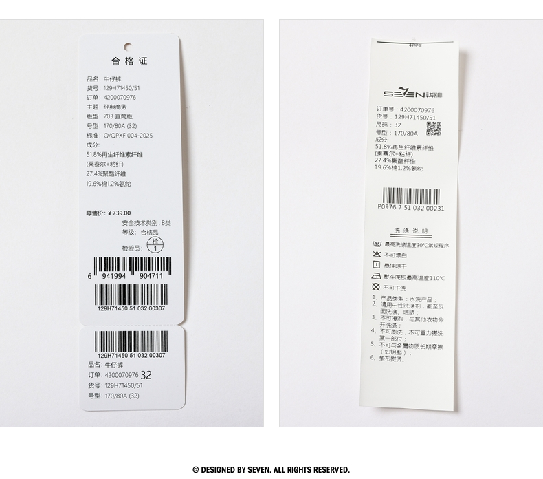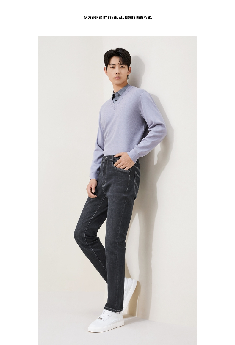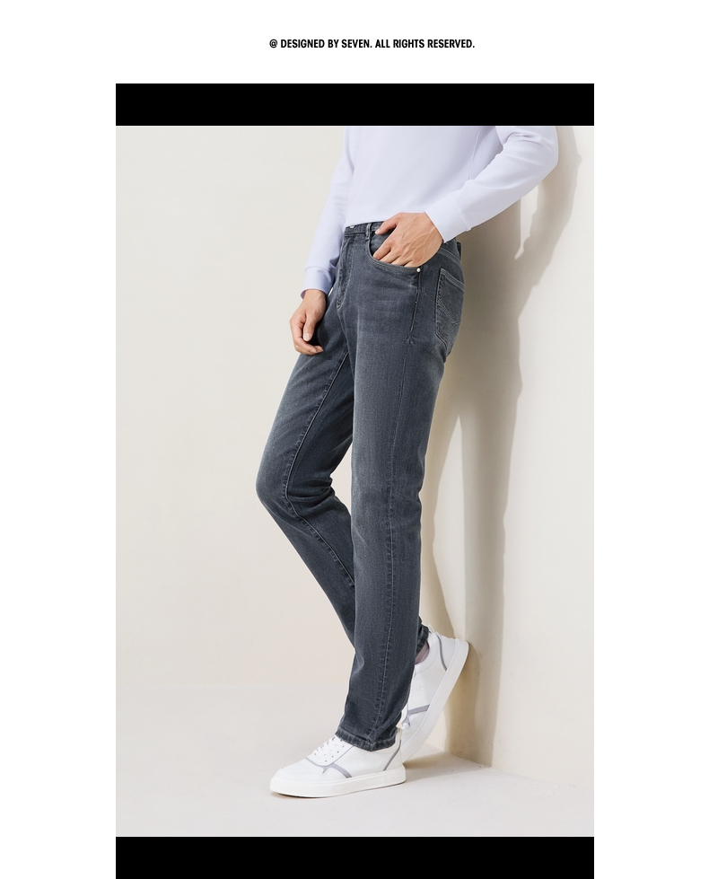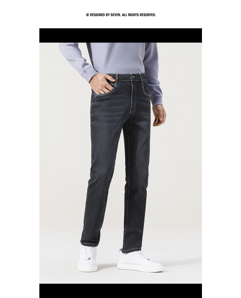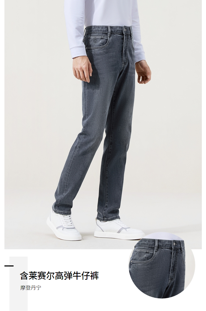【高弹】柒牌男装含莱赛尔牛仔裤2025冬季新品保暖修身潮流男裤129H71450