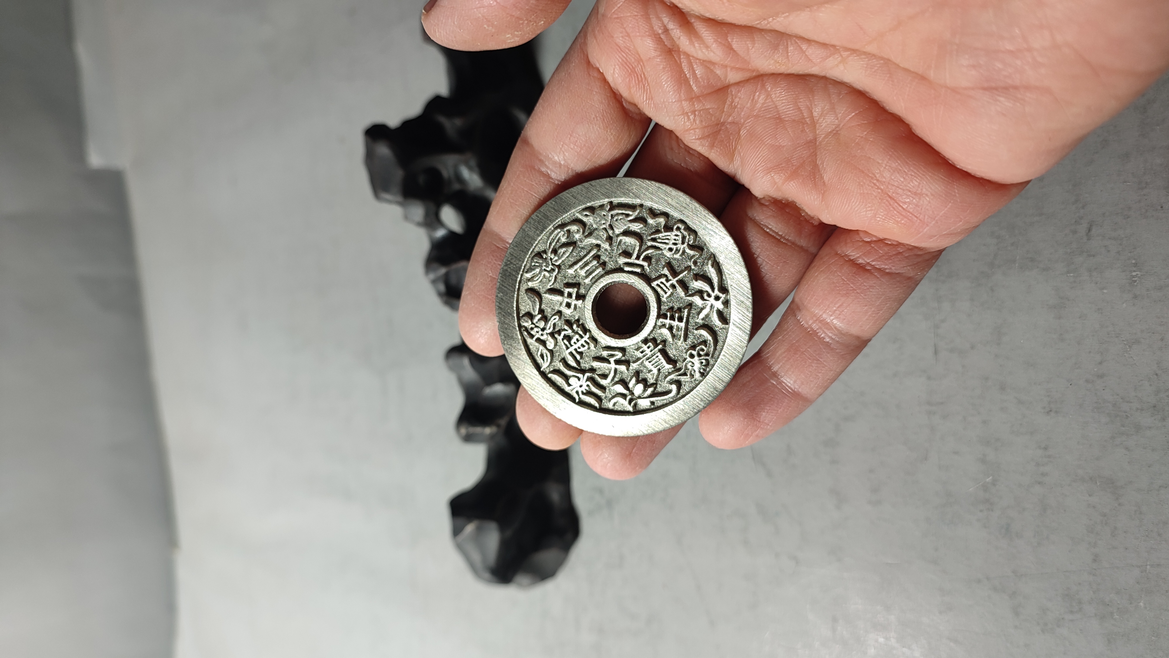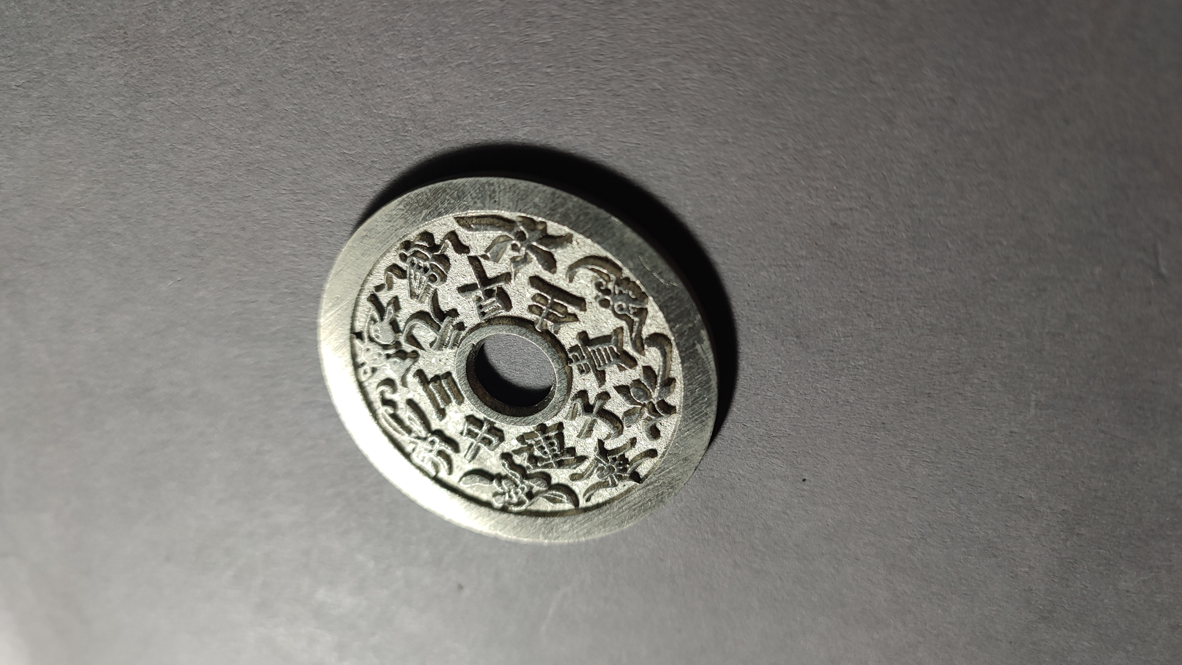 为了尽量还原古代钱币的文字神韵与时代铸造特征,每一枚都进行手工修刀、打磨。会有打磨痕迹、刻刀痕迹,铸造气孔或者微小沙眼,这正是手工与机器制作的区别,并非瑕疵。