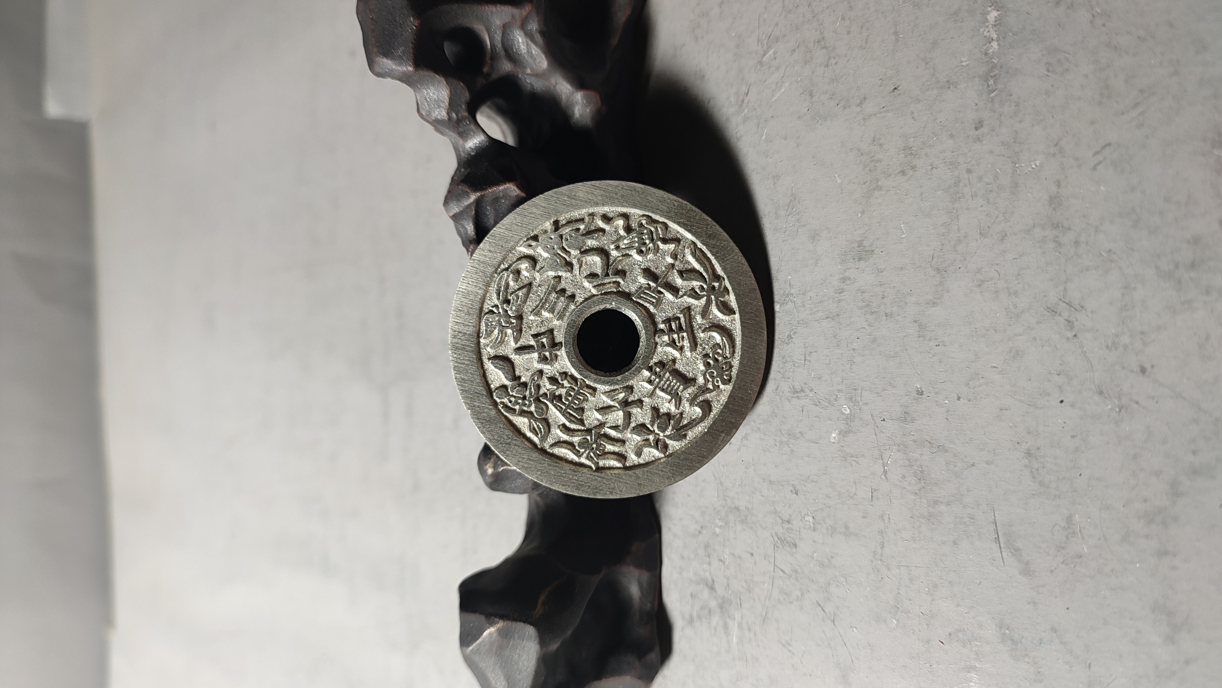 纯铜古法母钱翻砂铸造而成,容易上包浆。可用于文房镇纸、茶宠、杯子托、文玩垫、手把件……