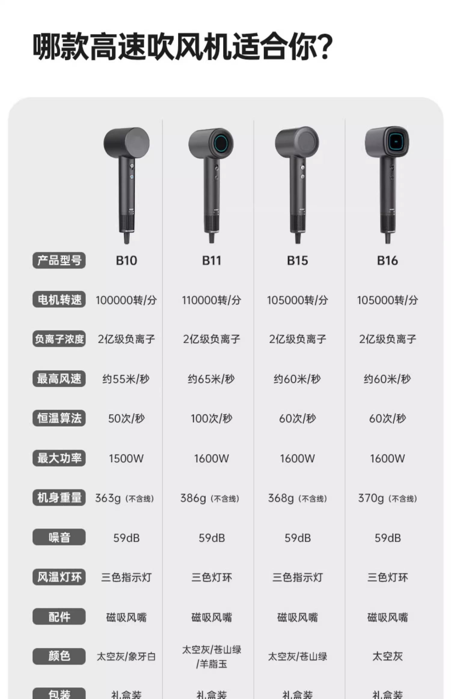 bowei泊为B16高速吹风机星级酒店同款大风力负离子护发静音电吹风