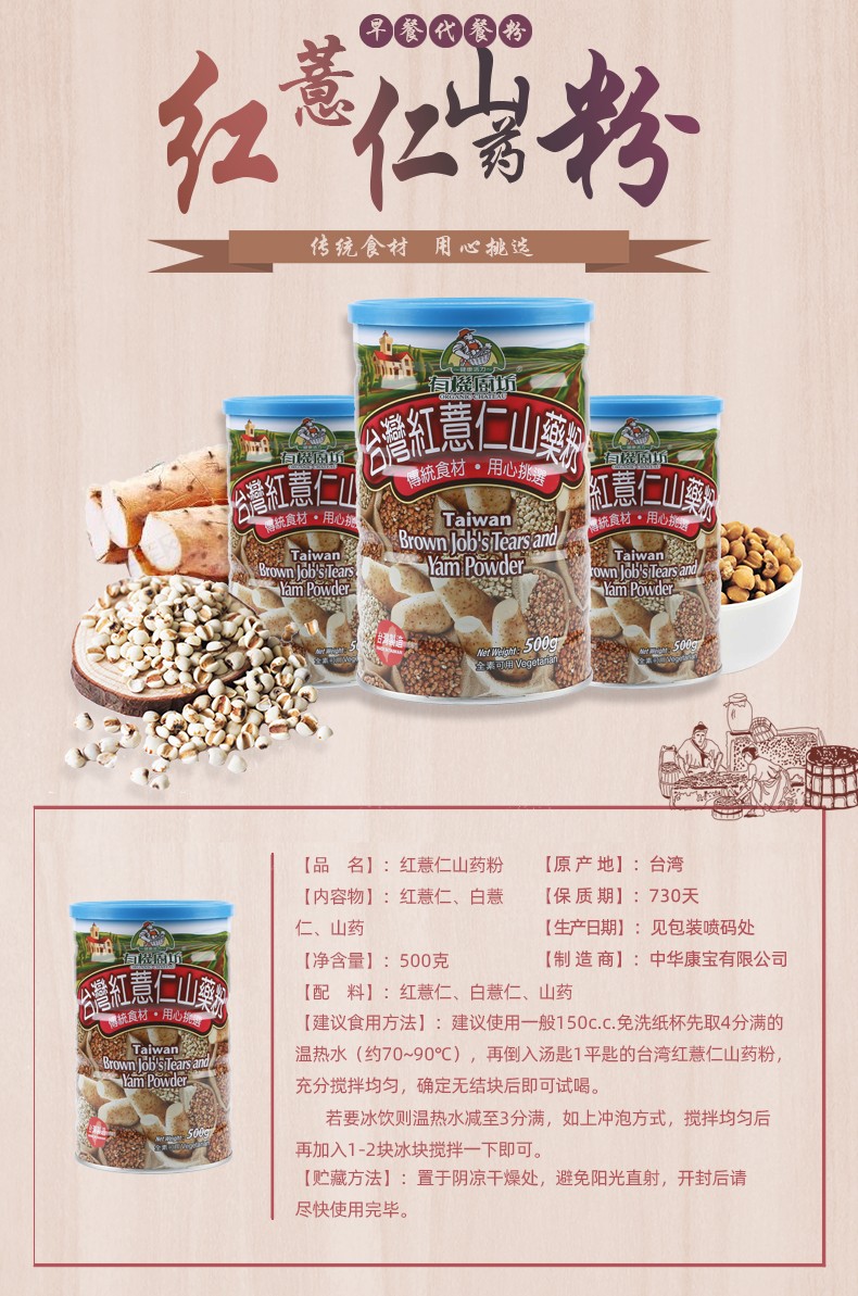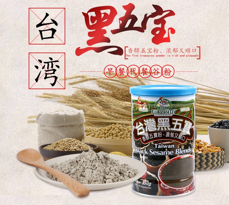 中国台湾有机厨坊红薏仁山药粉500g/特选黑五宝550g 代餐营养早餐粉 032970/032971