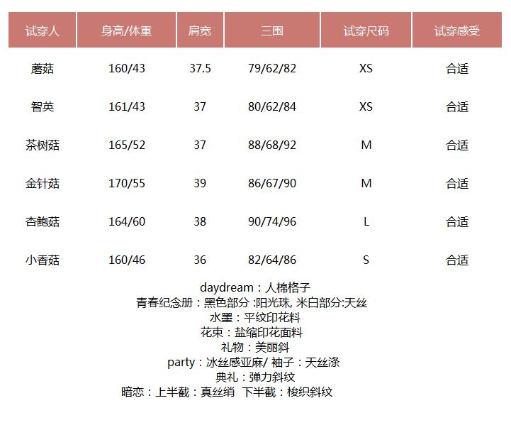 试穿表格,仅供参考!
