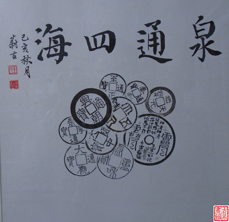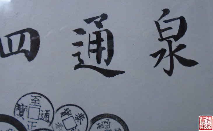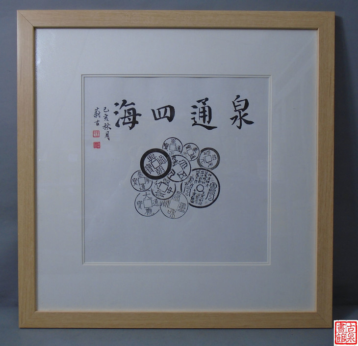 古泉书馆原拓挂件,书馆专职拓工精心拓纸而成,名家题字,精工装裱,超凡脱俗,钱币均为市面难寻的珍惜钱币,每一件都独一无二的精品, 精美绝伦!