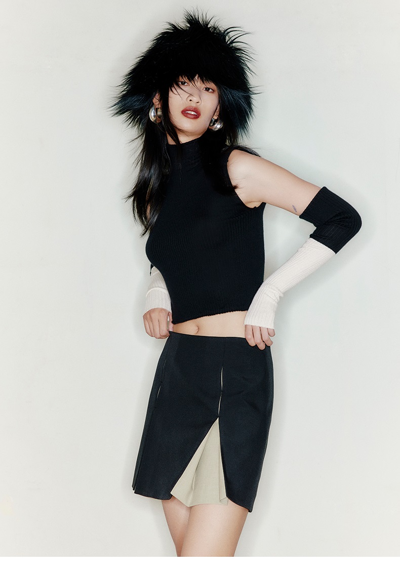 【赫伯】细缝撞色拼接小A字半裙/2200020A