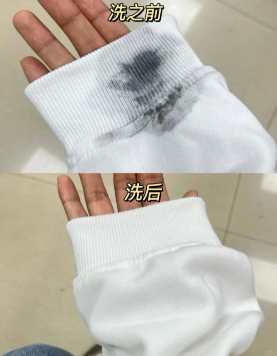 使用对比效果看得见 给大家看看这款香氛洗衣凝珠的去污效果 不管是多么严重的污垢 遇到洗衣凝珠都能够彻底清洁干净 是真正安全温和的0种刺激产品哦~