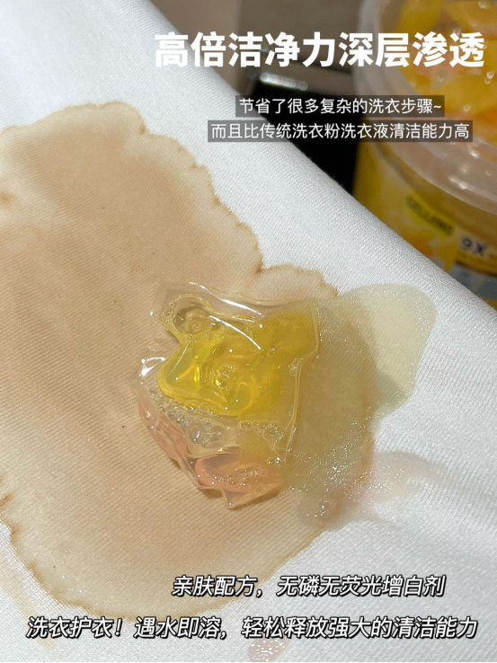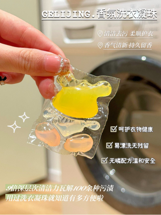 这款洗衣凝珠不仅含有高效的清洁成分 而且还有天然的香氛精华 当你把衣物放入洗衣机时,只需加入一颗凝珠,就能轻松解决洗衣难题! 深层清洁衣物,让污渍无处可藏💥💥