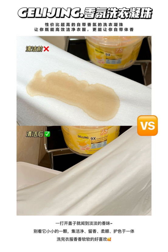 不停产就无限回购❗2桶直接用半年 GELIJING.香氛洗衣凝珠 四效合一,一颗洗一桶洗护同步💯 留香巨持久 香水都省了~ ✅12倍深层次清洁力!强效去污! ✅速溶外膜遇水即化,简直不要太方便~ ✅一颗=洗衣液+柔顺剂+护色+留香珠 ✅成分表安全,不含荧光剂有害物质,给娃用也很安心! 孕期、哺乳期、小婴儿、大宝宝都可用