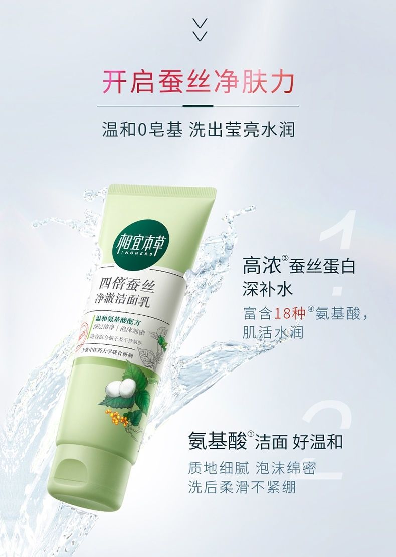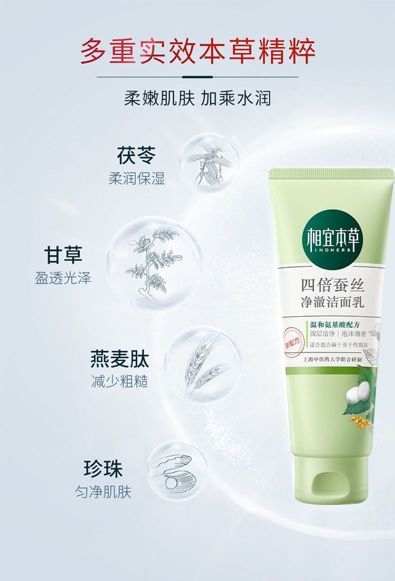 【爆款超低价预售 急单慎拍】相宜本草四倍蚕丝净澈洁面乳氨基酸洗面奶补水深层清洁毛孔