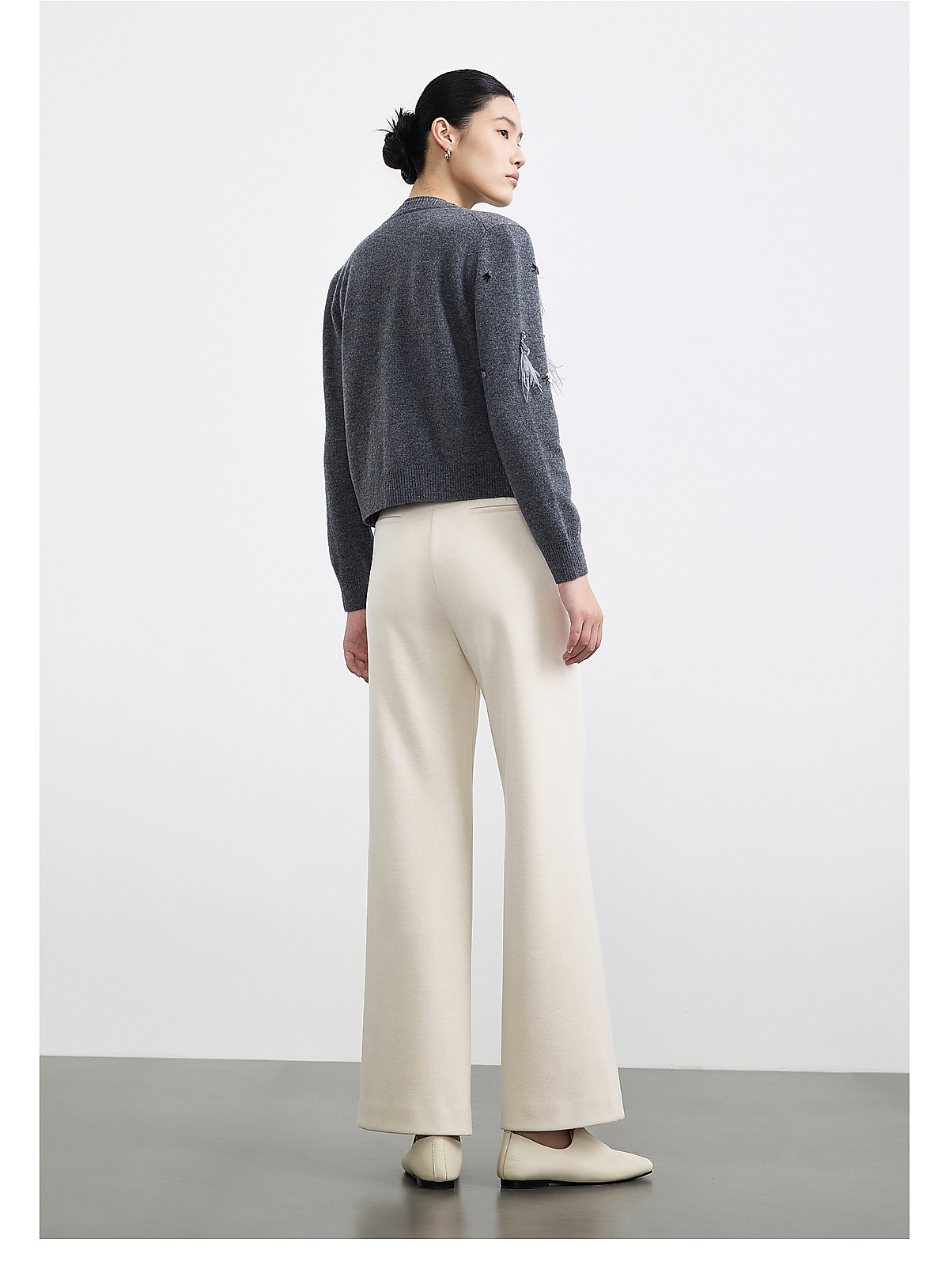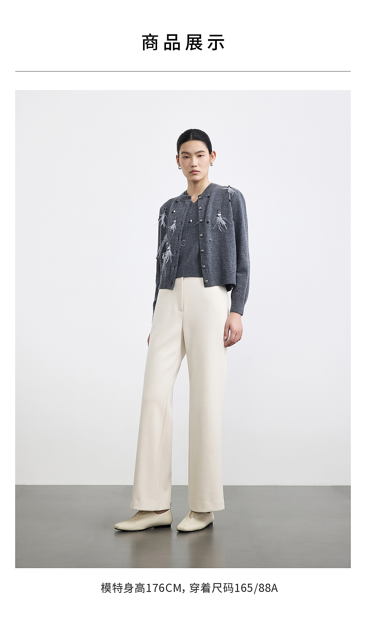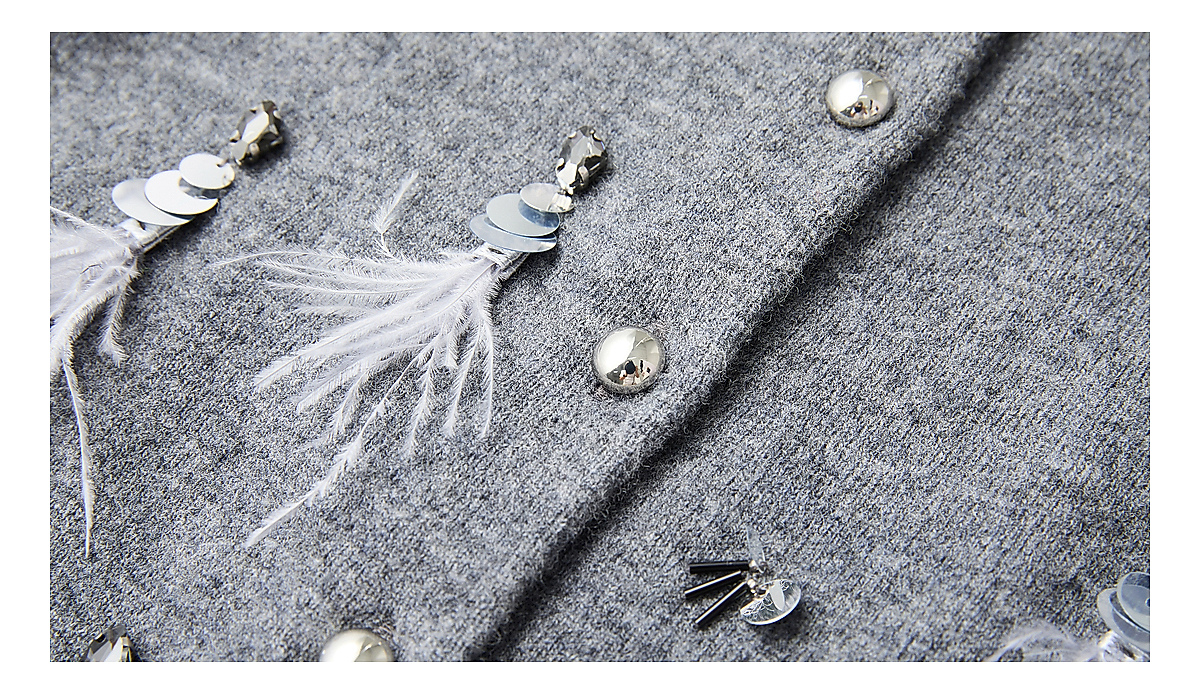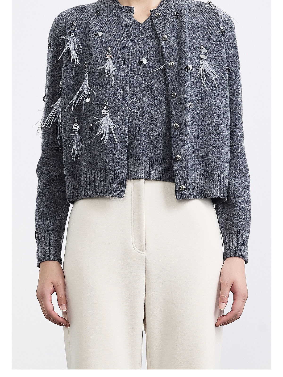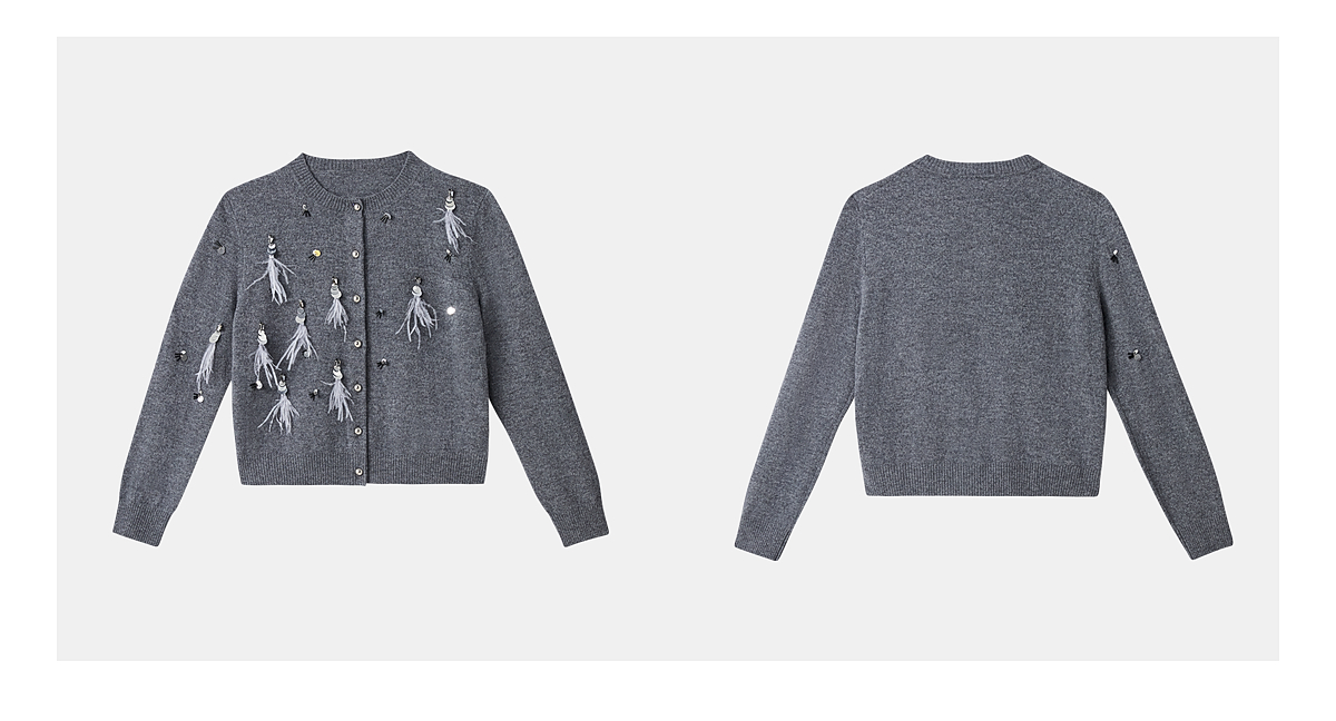PURE TOUCH女装25秋冬新款圆领羊毛针织开衫重工装饰羊毛开襟外套
