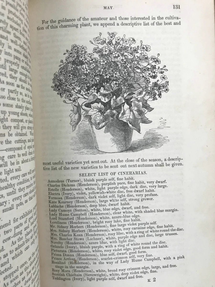 1854年 花店、水果商与园林杂志 10余幅套色版画与多幅黑白版画插图 全真皮精装大32开