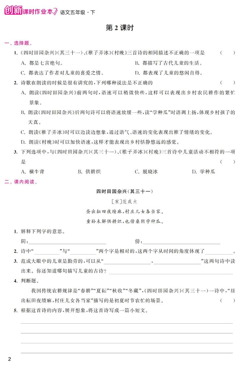 《创新课时作业本.语文5年级.下》由《创新课时作业本》编写组编