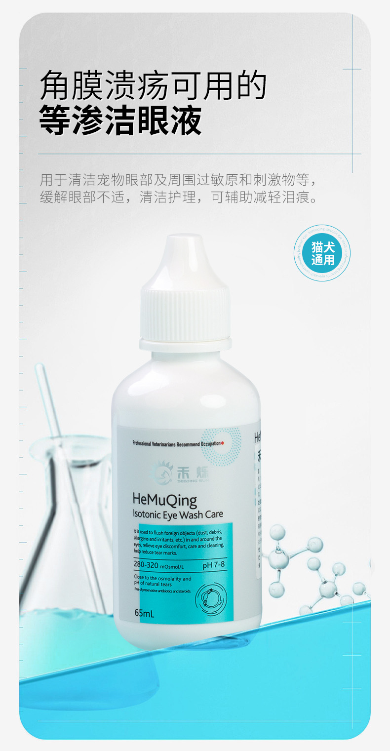 禾烁禾睦清 等渗洁眼液 眼部清洁温和有效 犬猫通用 65ml