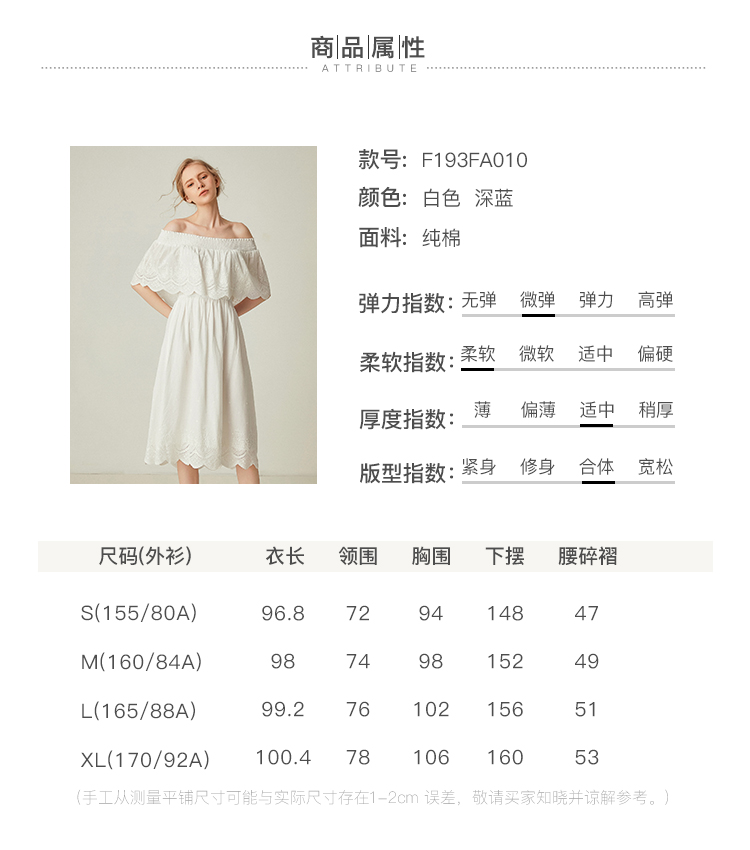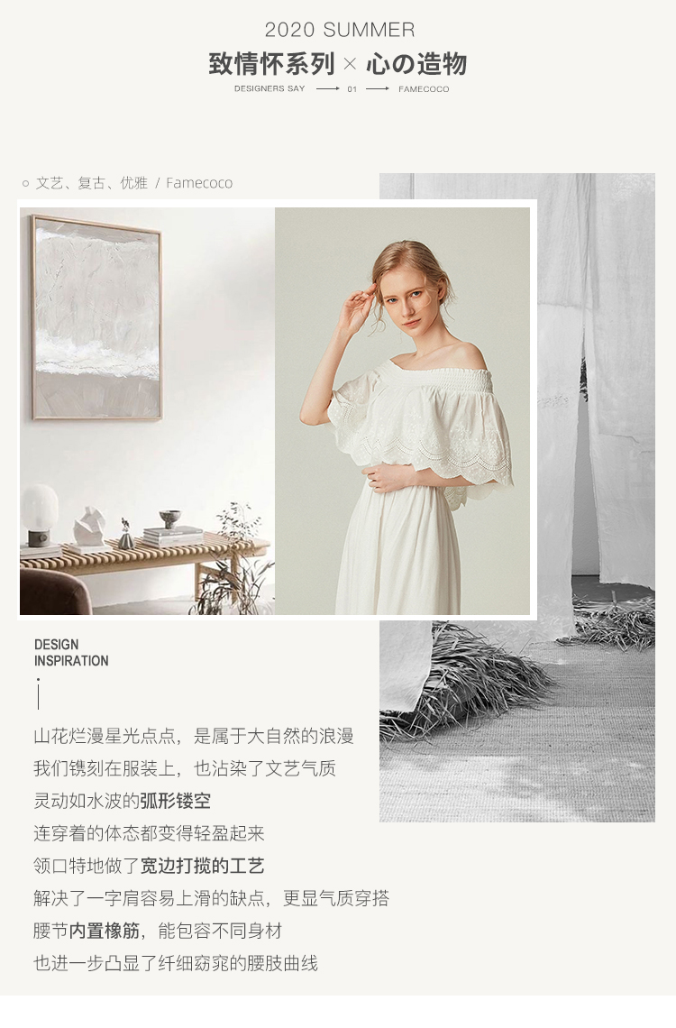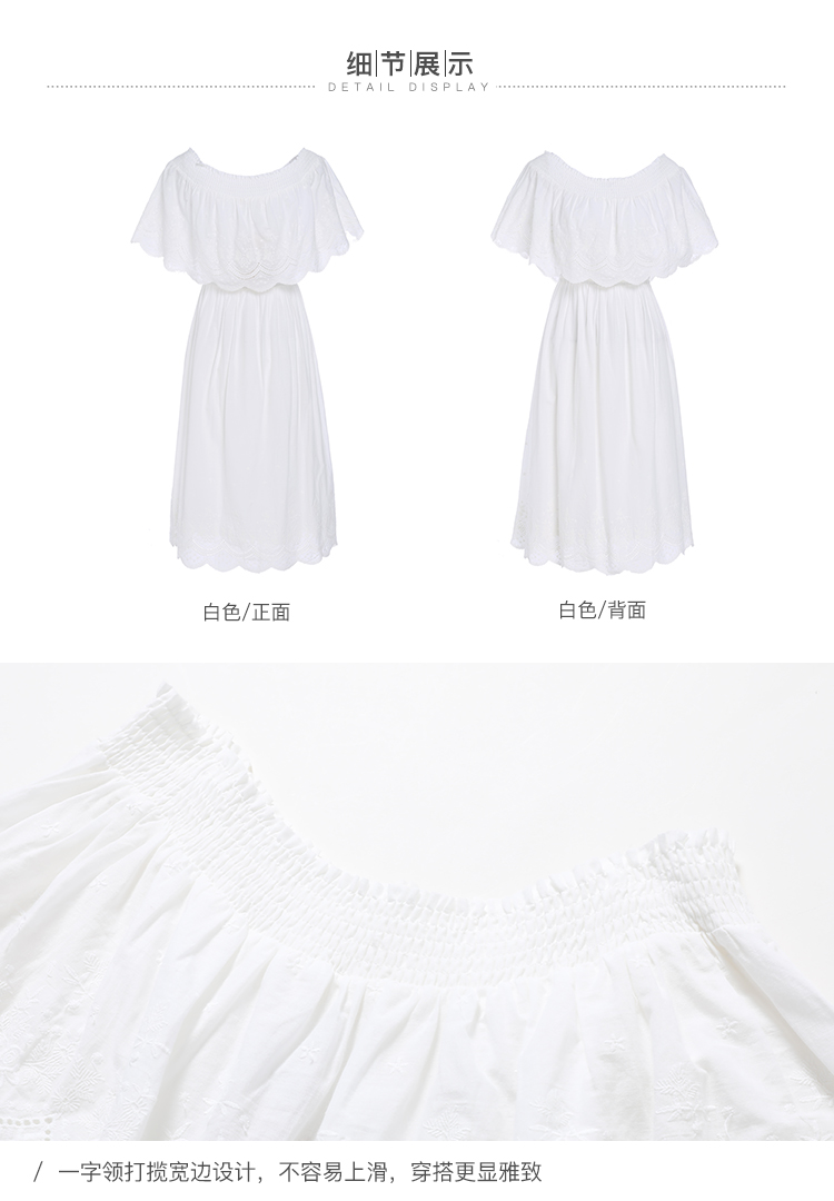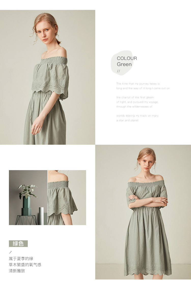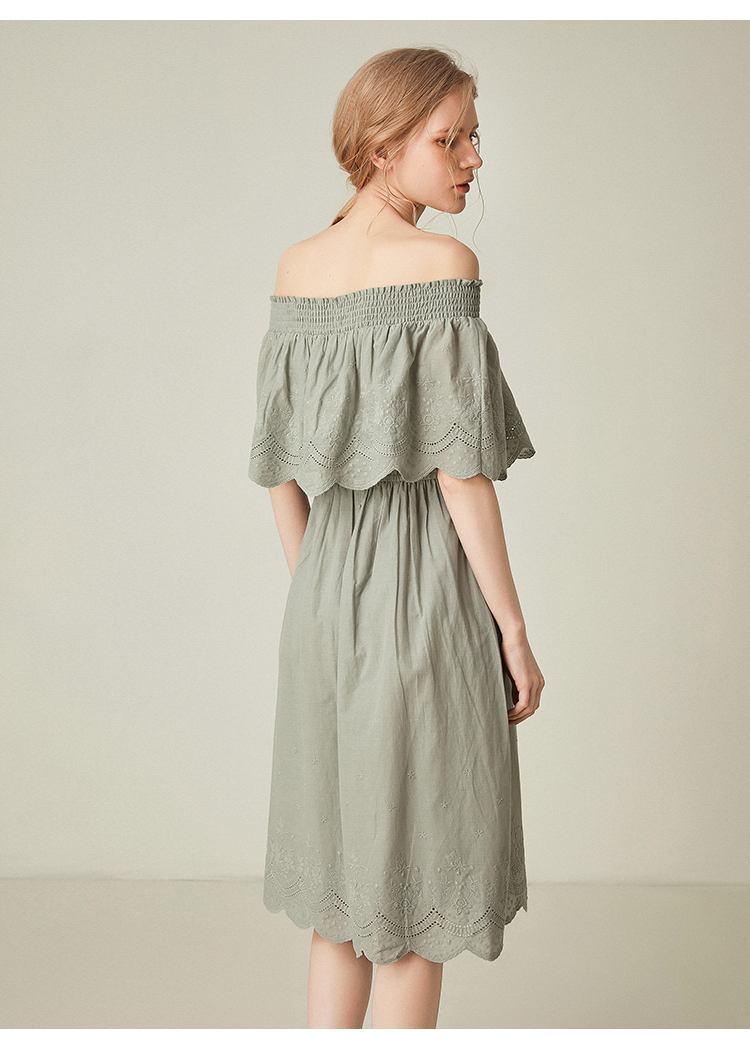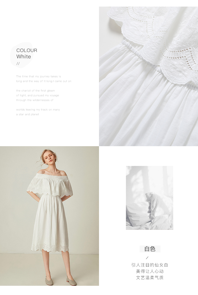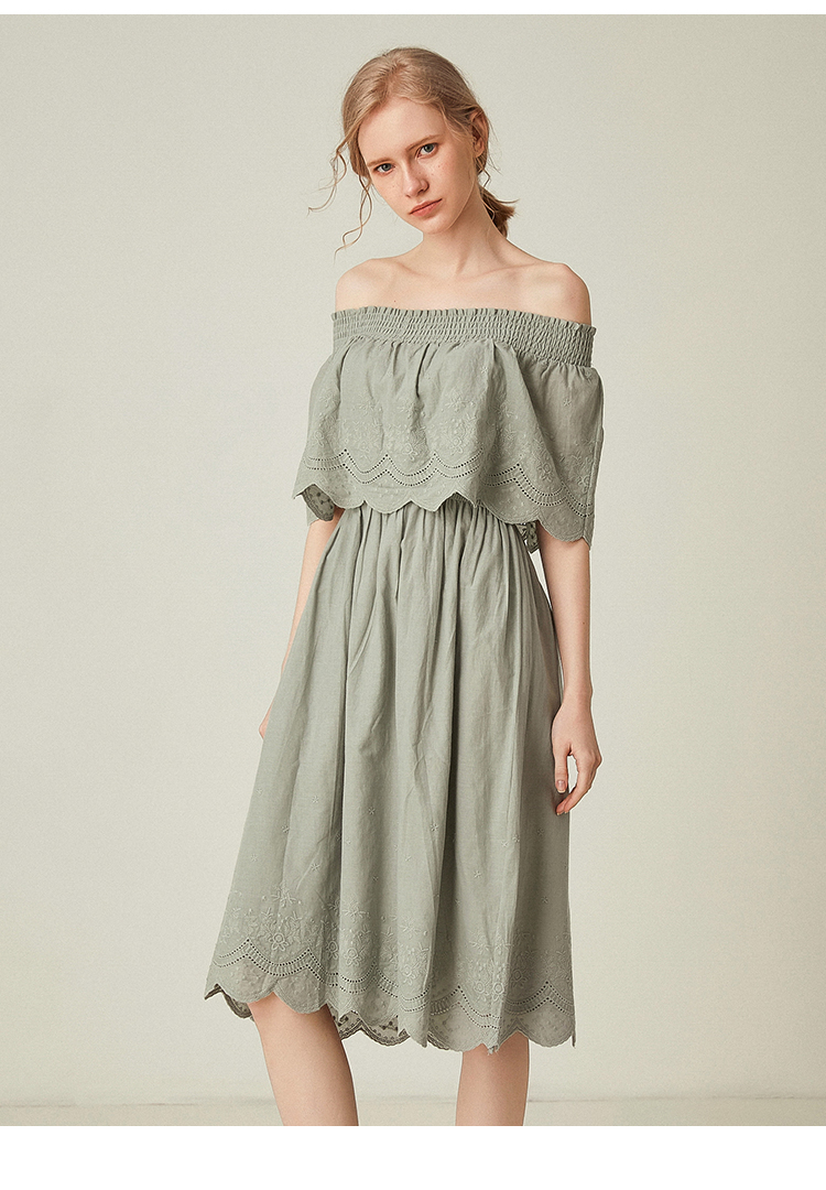 famecoco范可儿一字领连衣裙女夏纯棉气质女人味中长裙F193FA010