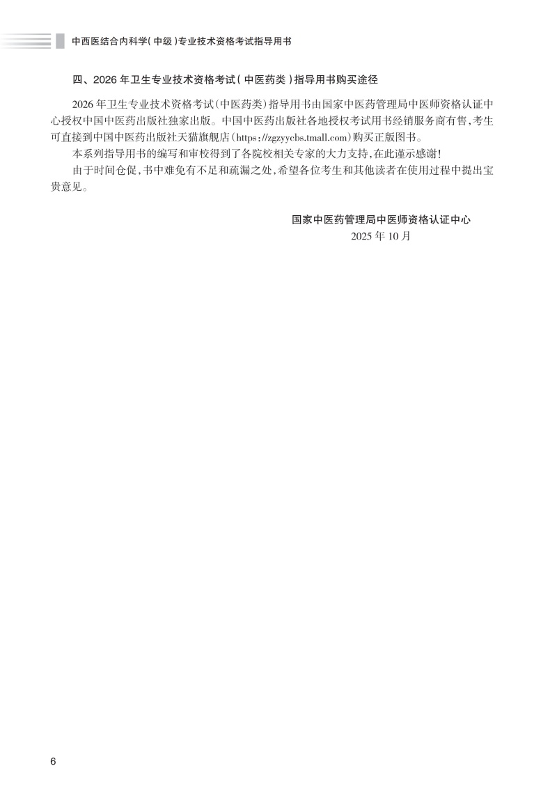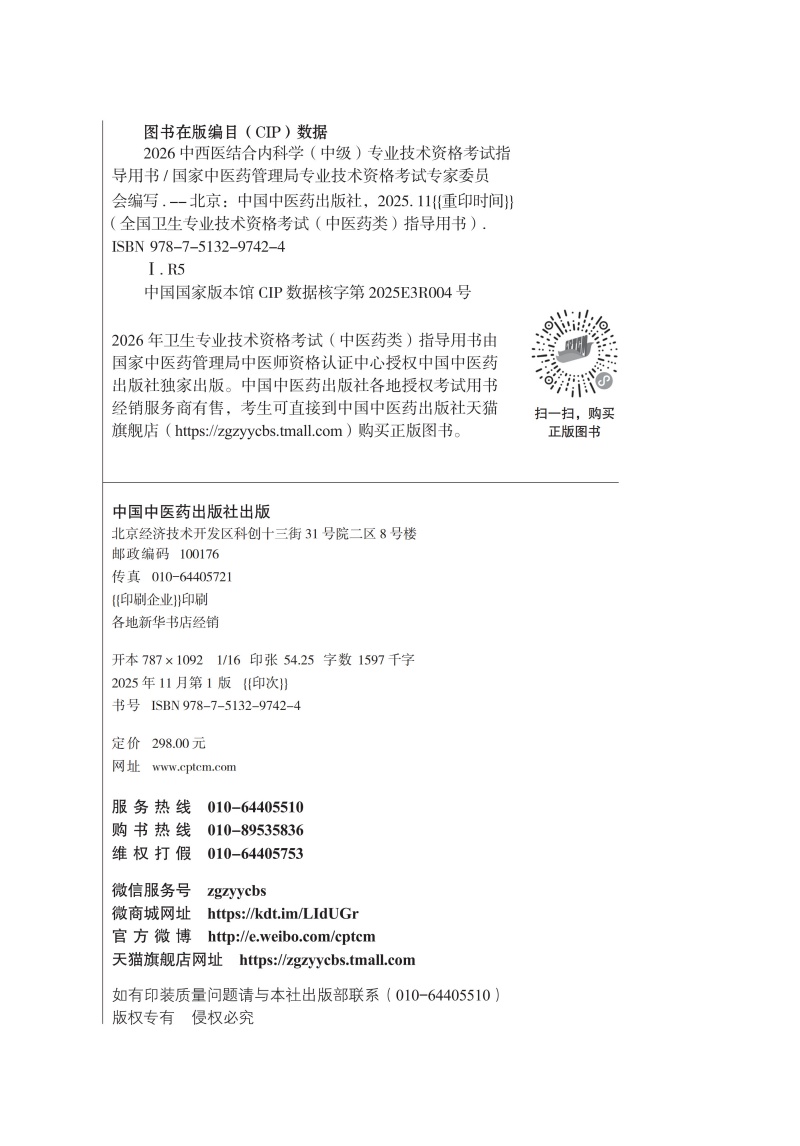 书名:2026中西医结合内科学(中级)专业技术资格考试指导用书