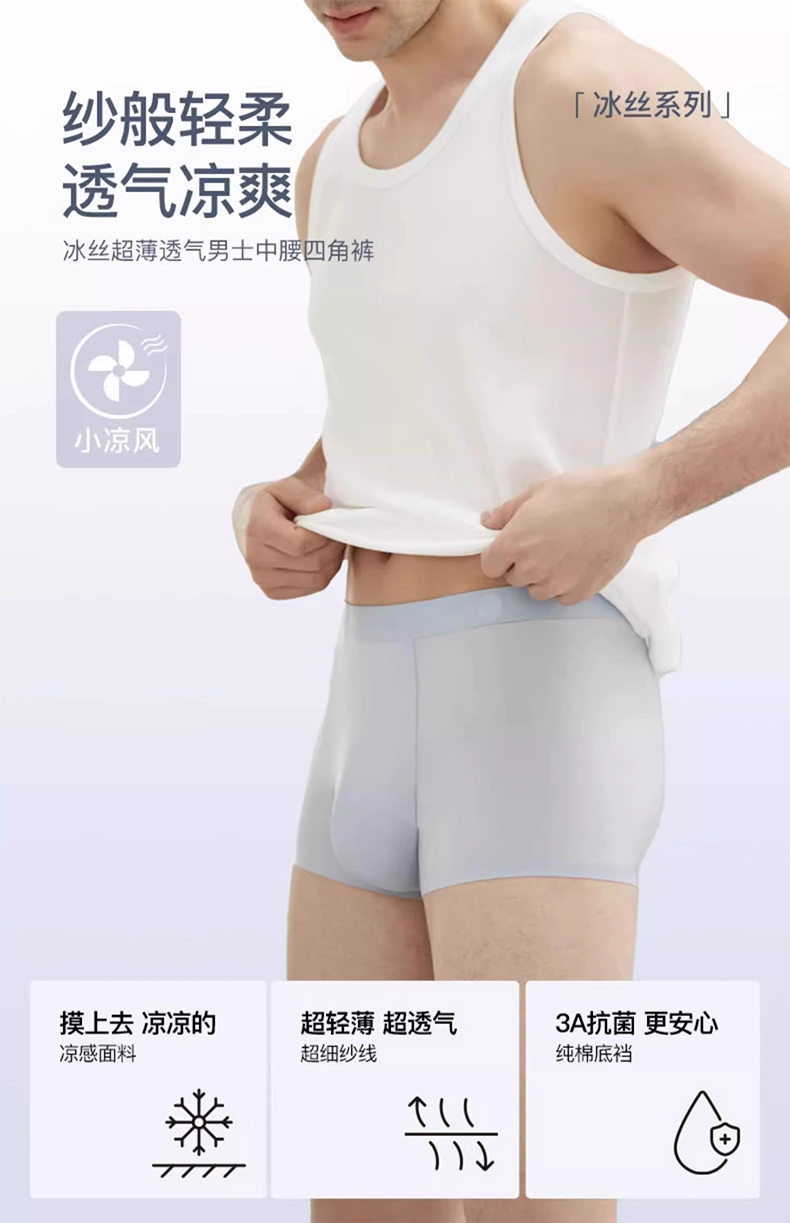 裸感体验【冰丝空气内裤】360°冰感轻盈,跟没穿一样舒适,冰凉透爽,告别闷热!