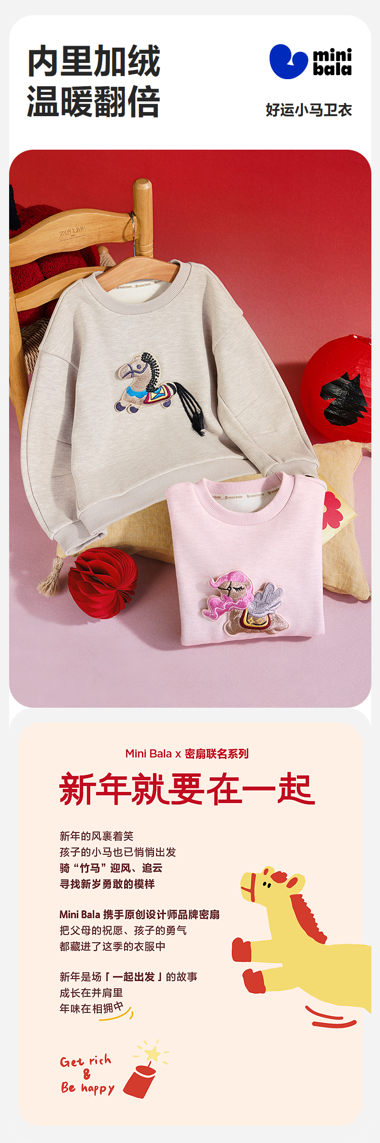 [密扇联名]迷你巴拉男女童儿童卫衣内里加绒冬季萌趣艺术新年上衣