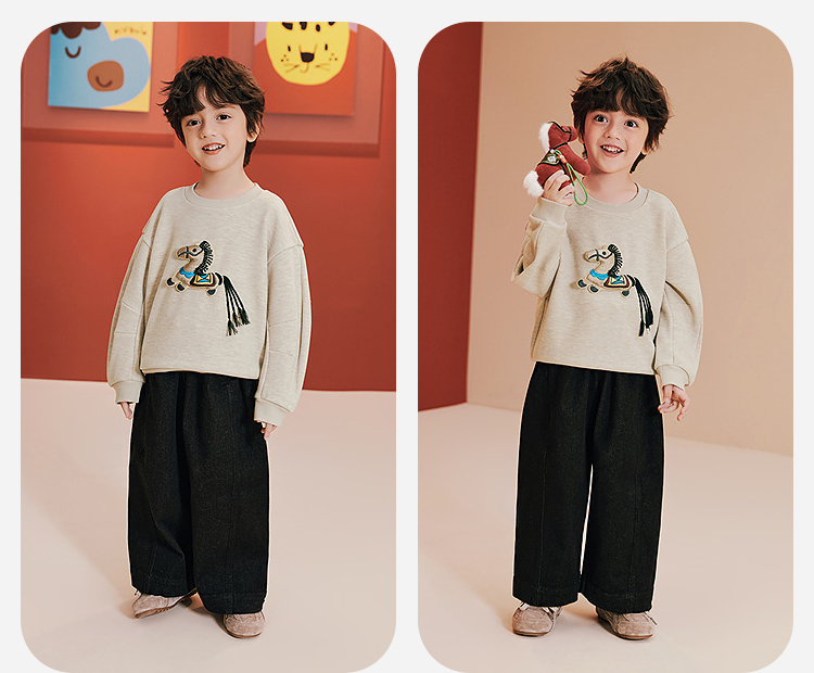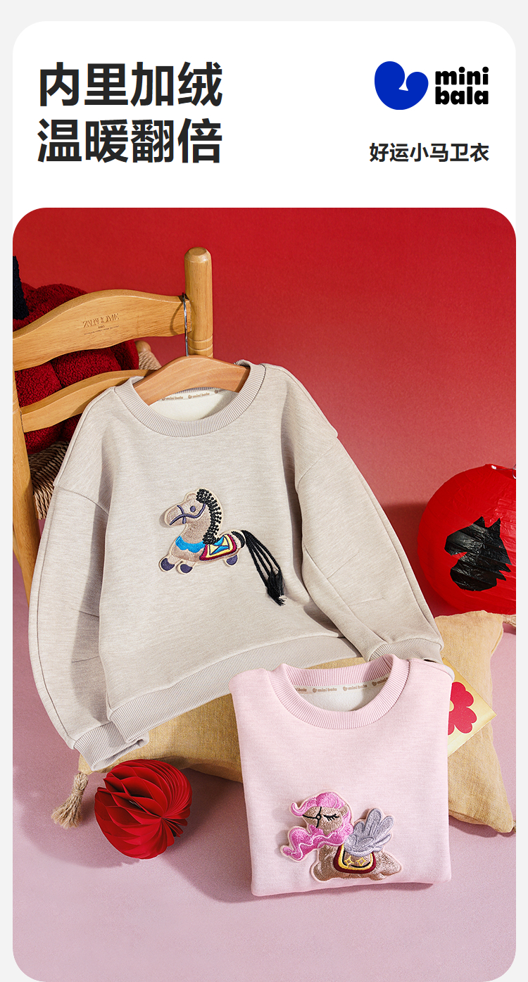 [密扇联名]迷你巴拉男女童儿童卫衣内里加绒冬季萌趣艺术上衣