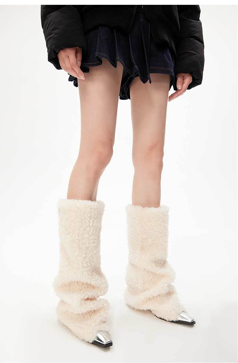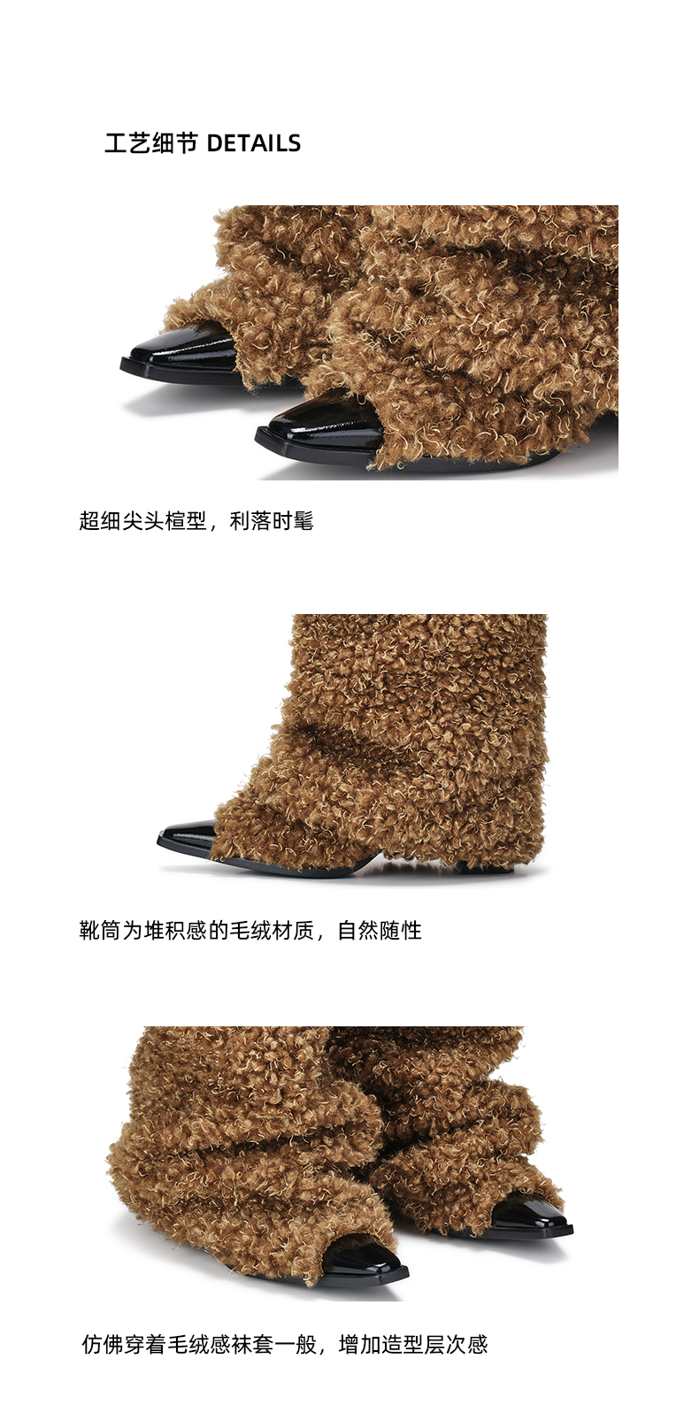 [断码]尖头毛绒堆堆长靴 柔软卷毛俏皮甜酷