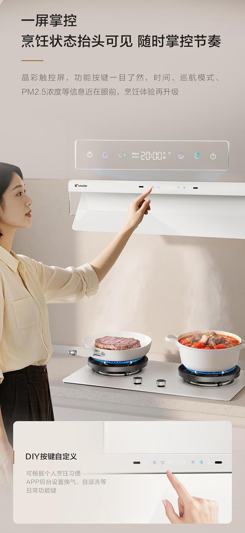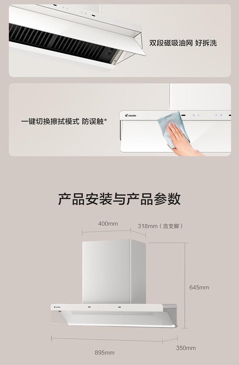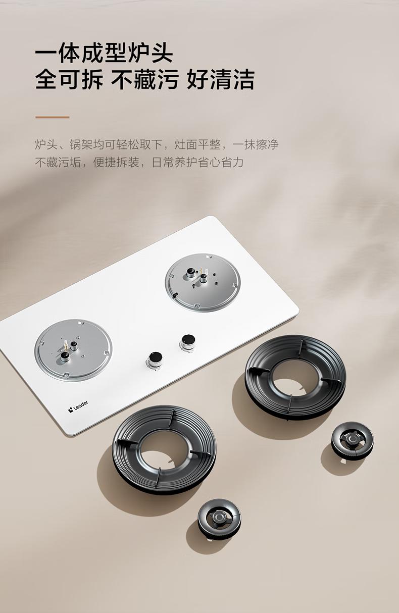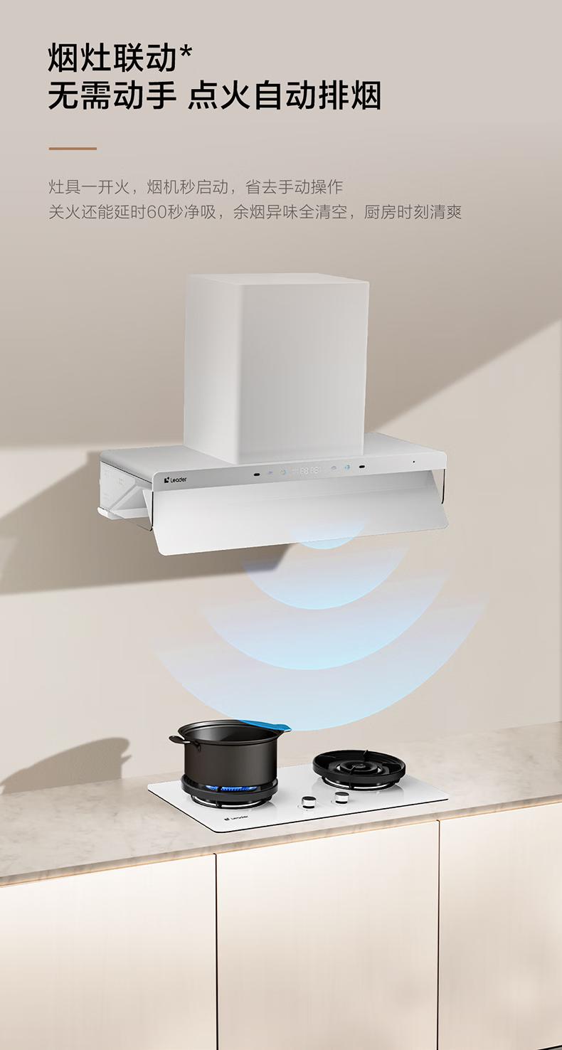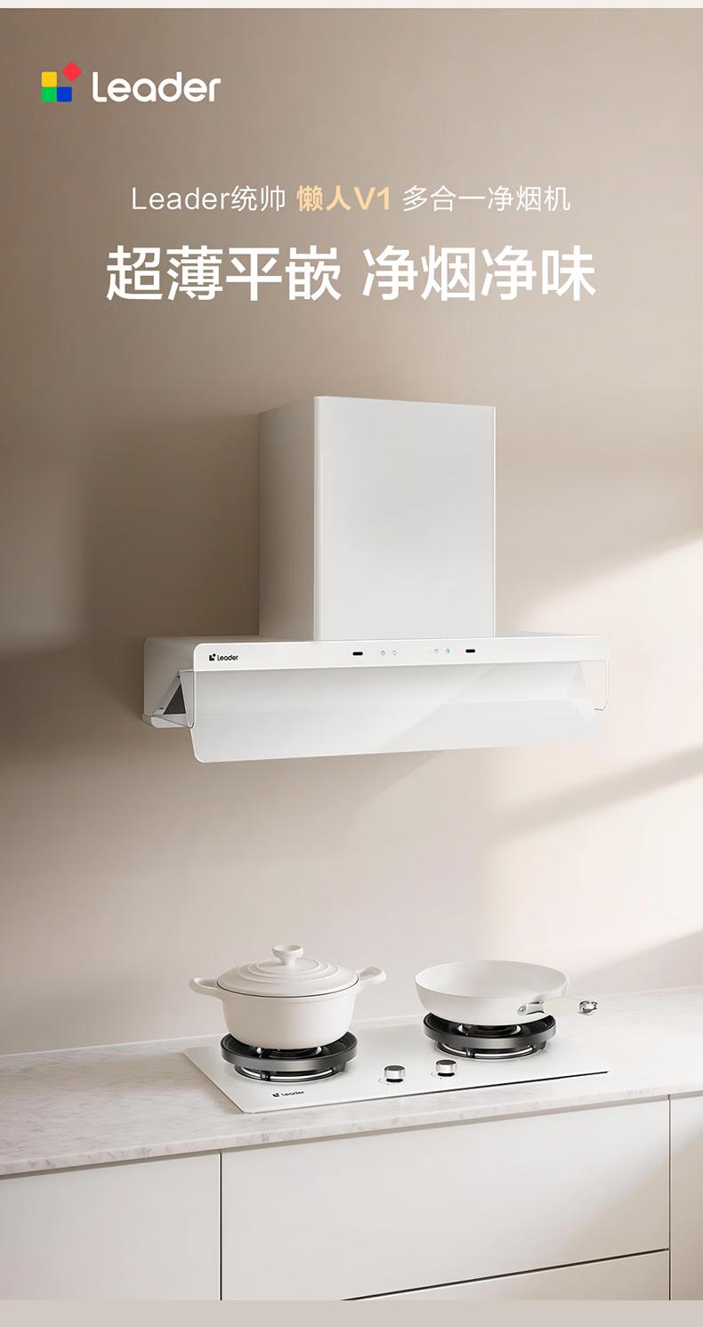统帅(Leader)海尔抽吸排油烟机 懒人V1 家用30风量以旧换新 白色顶侧一体烟灶联动套装 72%热效台嵌两用燃气灶