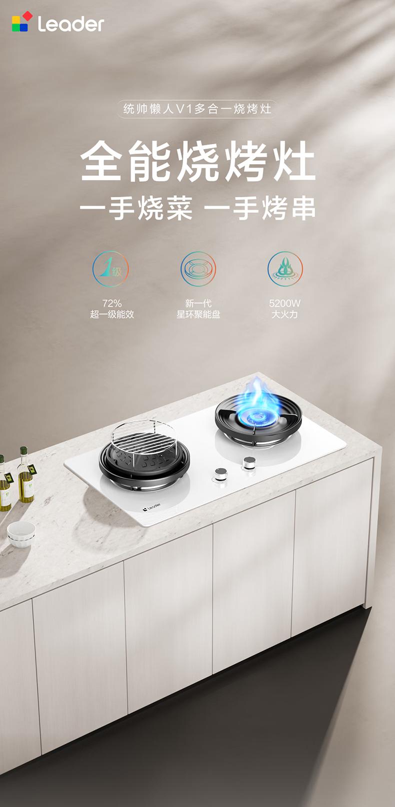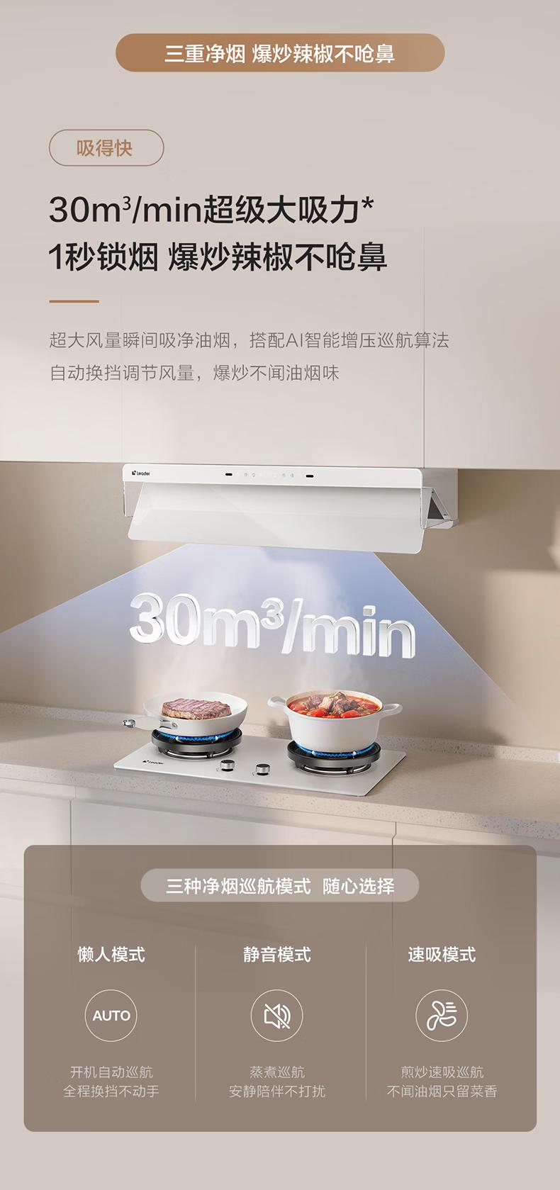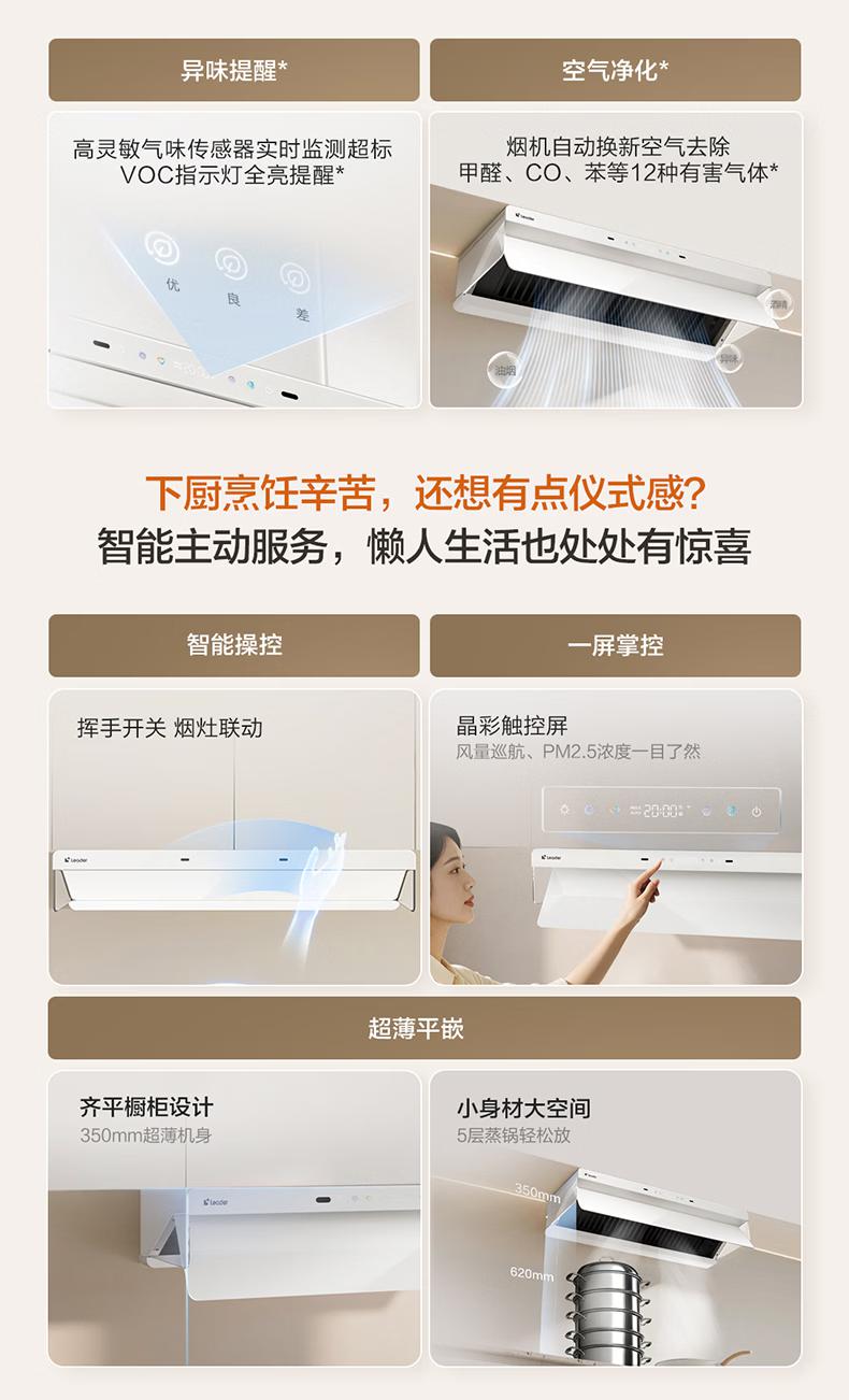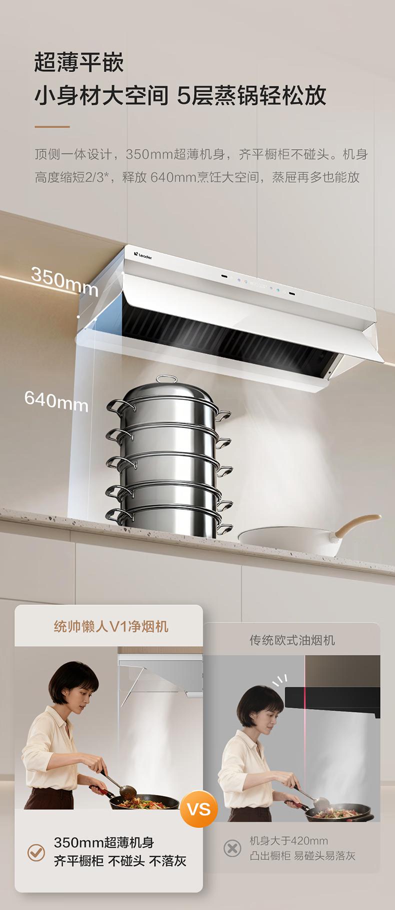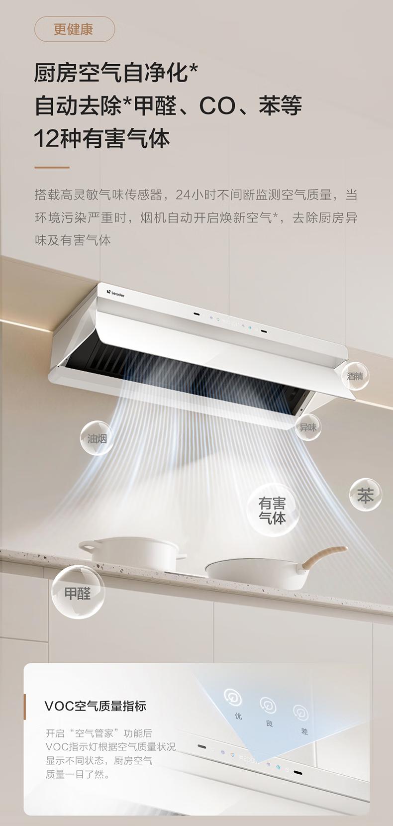 统帅(Leader)海尔抽吸排油烟机 懒人V1 家用30风量以旧换新 白色顶侧一体烟灶联动套装 72%热效台嵌两用燃气灶