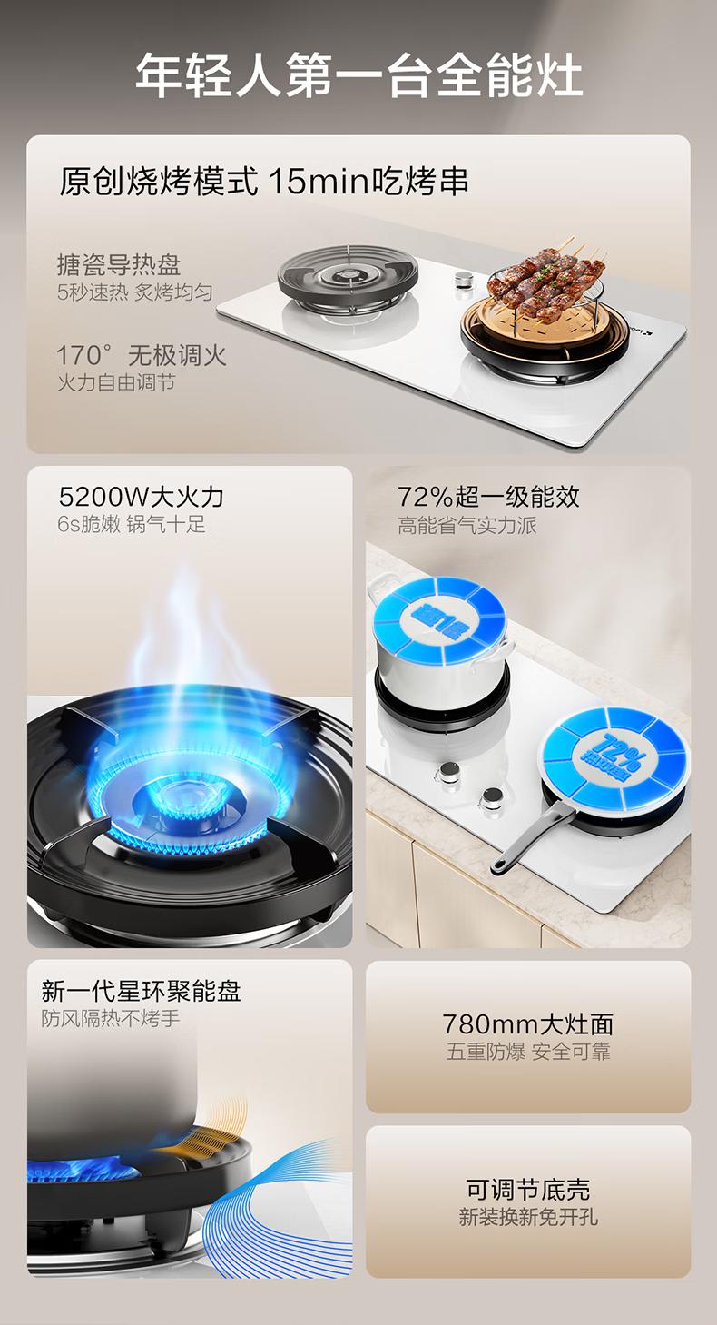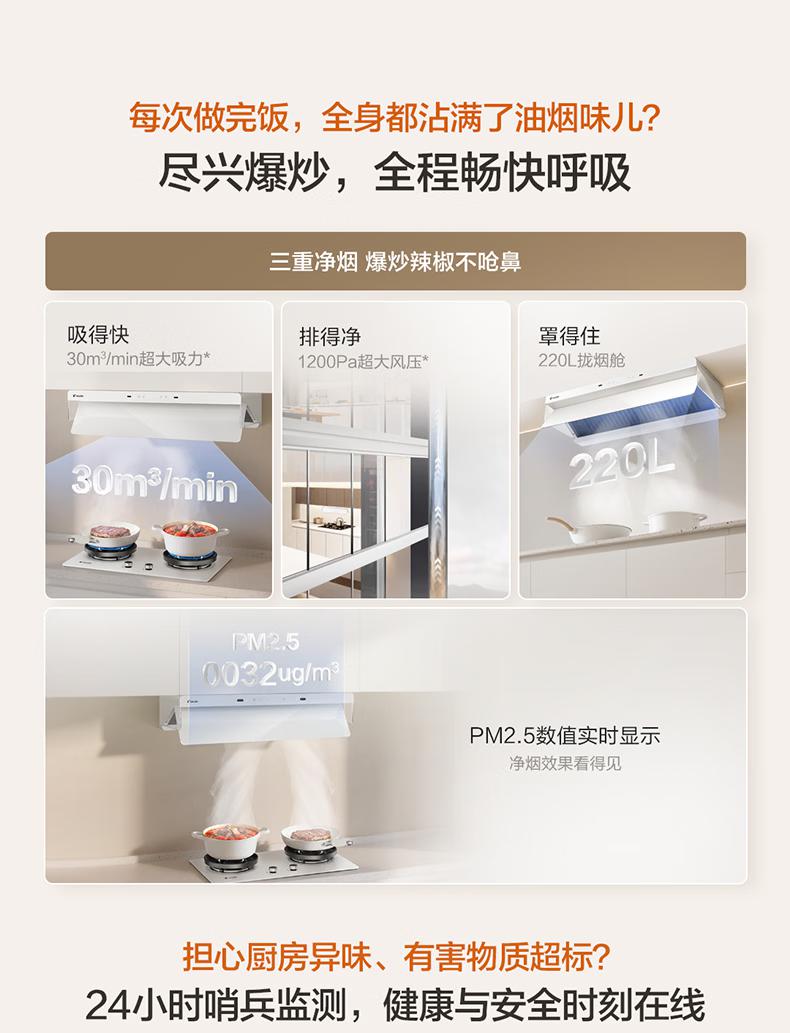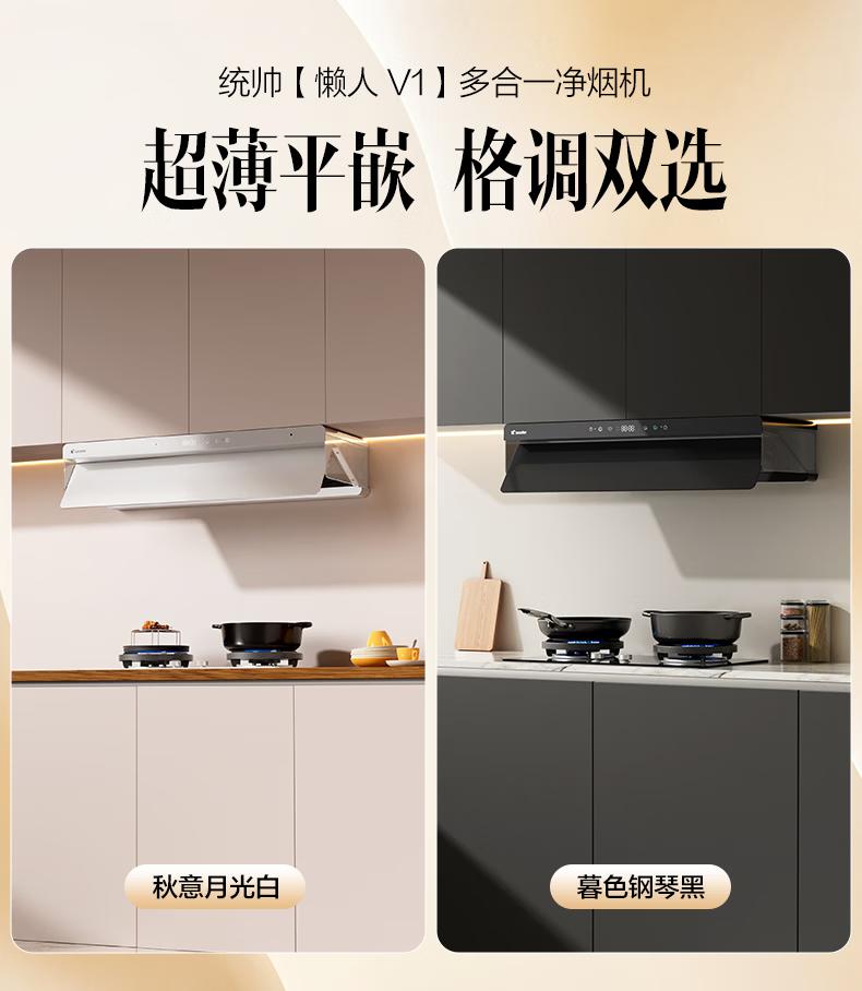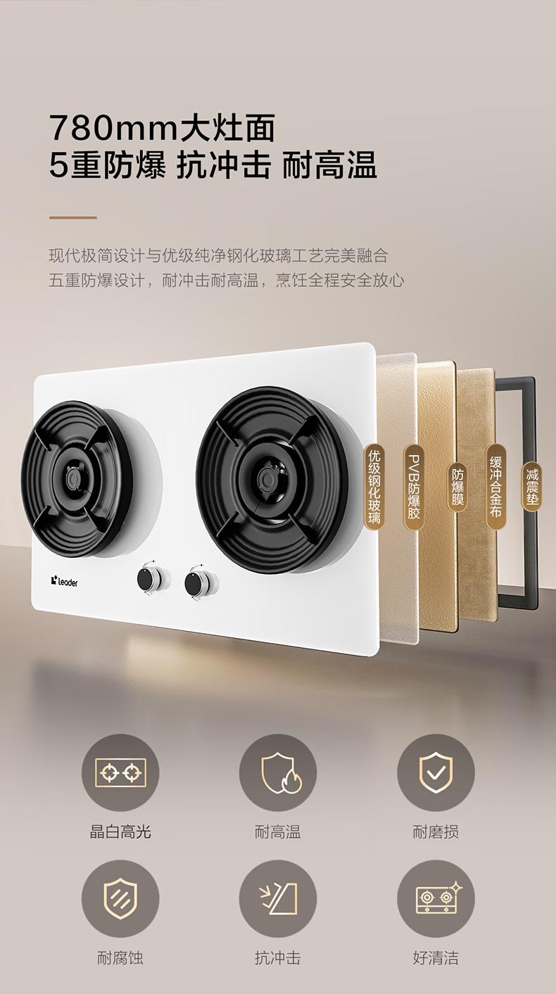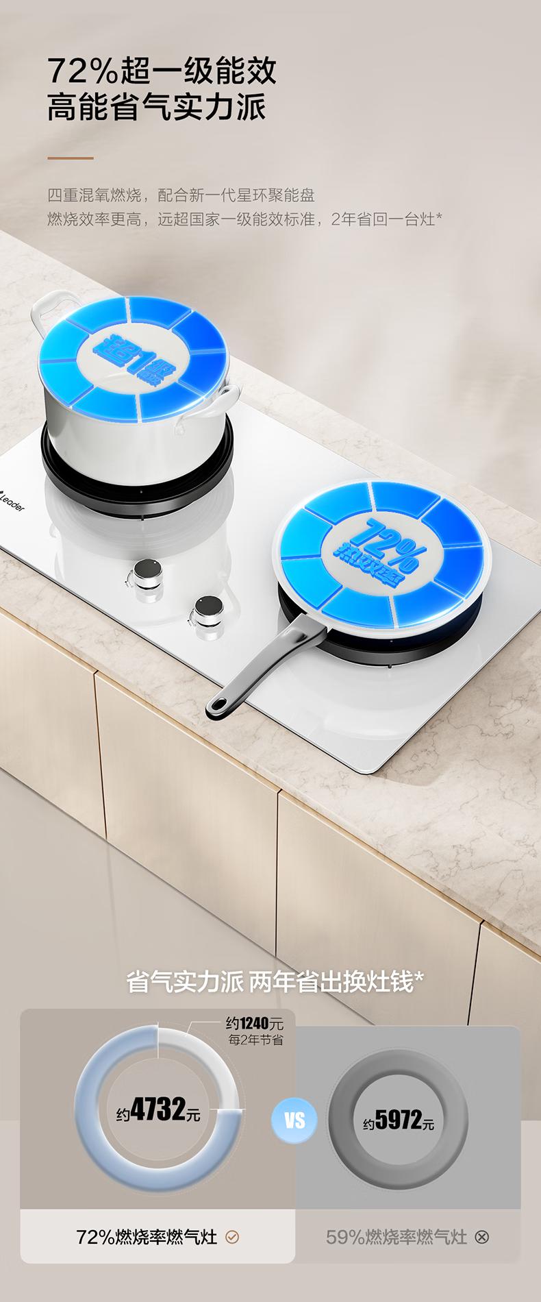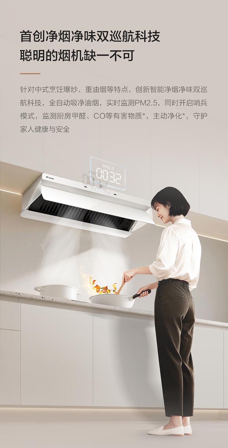 统帅(Leader)海尔抽吸排油烟机 懒人V1 家用30风量以旧换新 白色顶侧一体烟灶联动套装 72%热效台嵌两用燃气灶