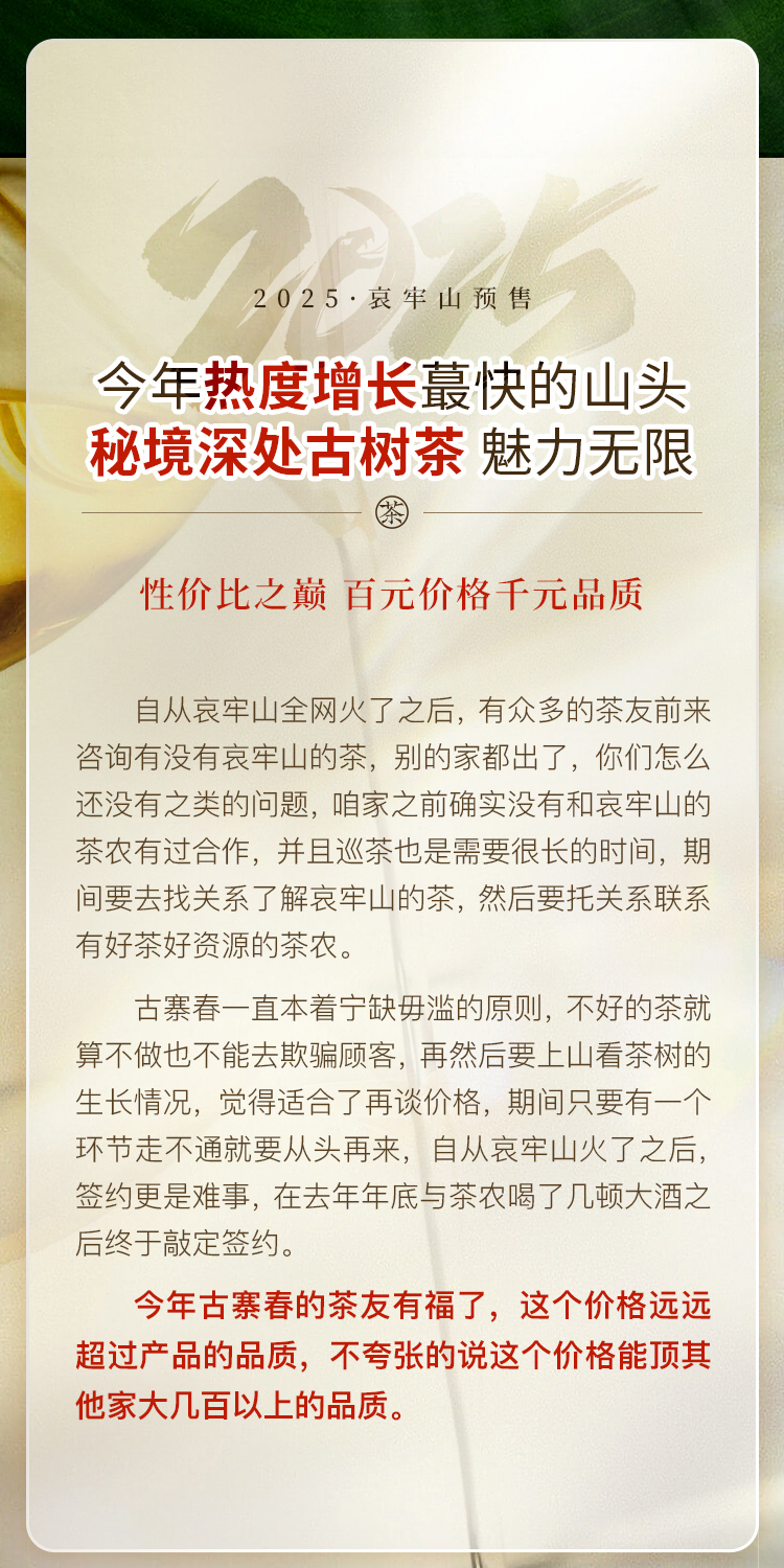 【哀牢山】哀牢山秘境深处古树茶,出场即王炸!首年开采0利润让古粉感受其魅力!性价比之巅,357克/饼