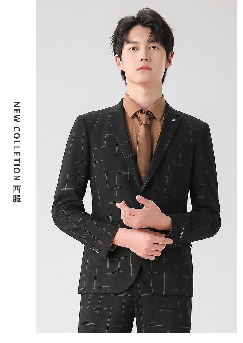 圣得西男装秋季新款男士渐变双色格时尚西服套装【门店新品】2152028816
