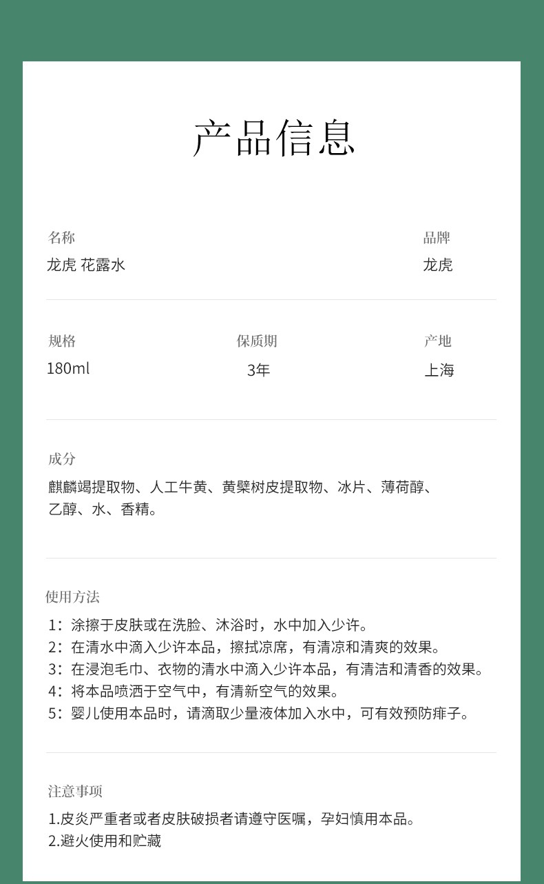 龙虎花露水180ML/瓶*2