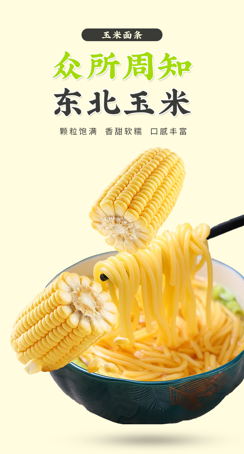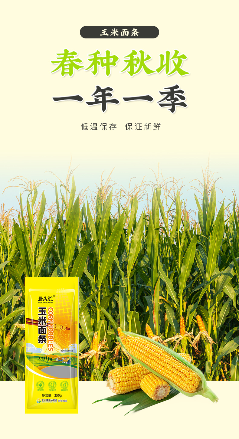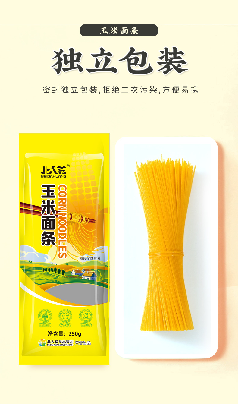 「5袋装」北大荒玉米面条250g 健康粗粮 粮油米面