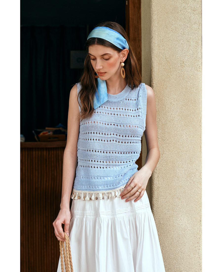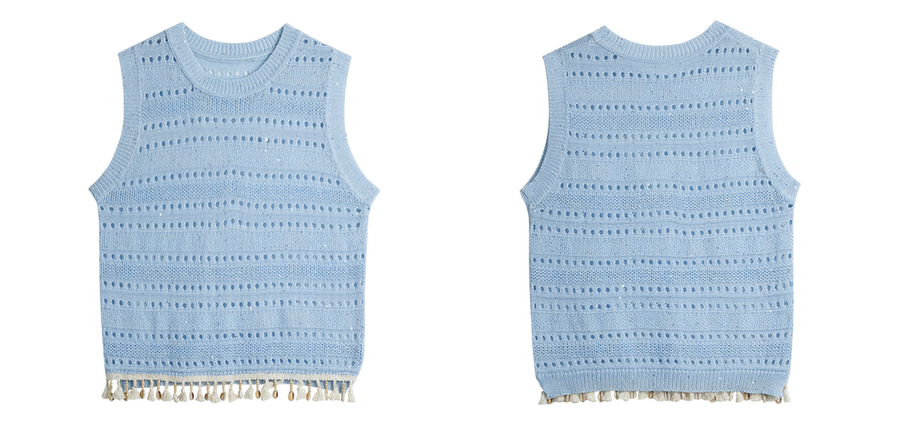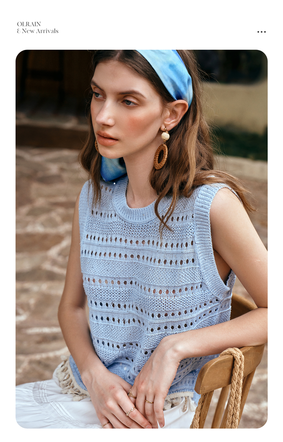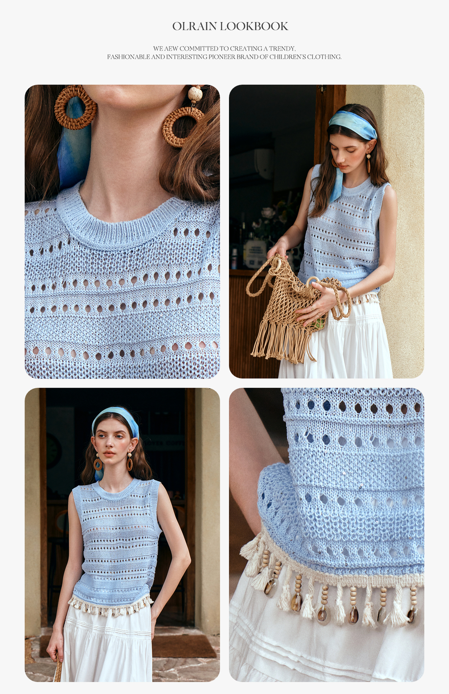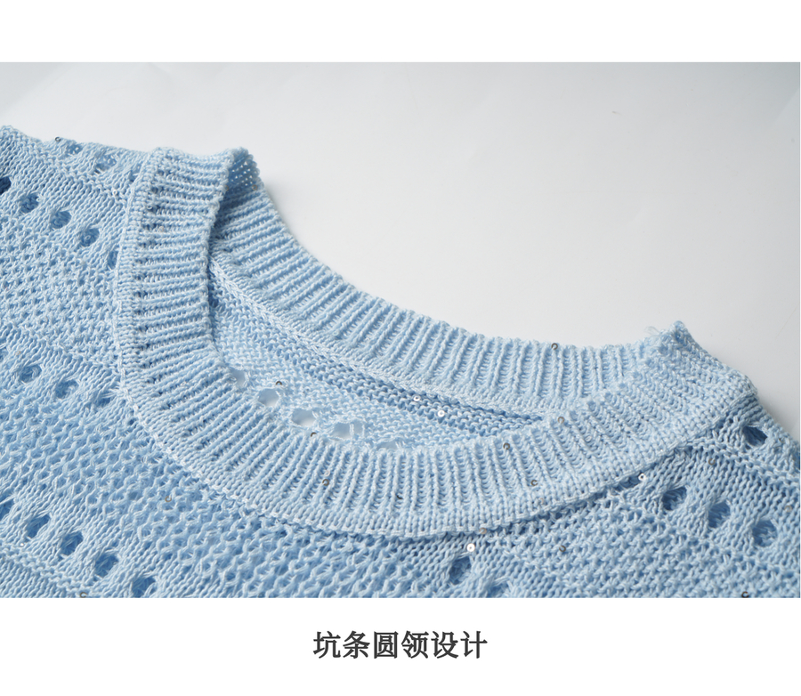 OLrain欧芮儿度假风圆领镂空套头针织衫夏季2025新款小众气质上衣