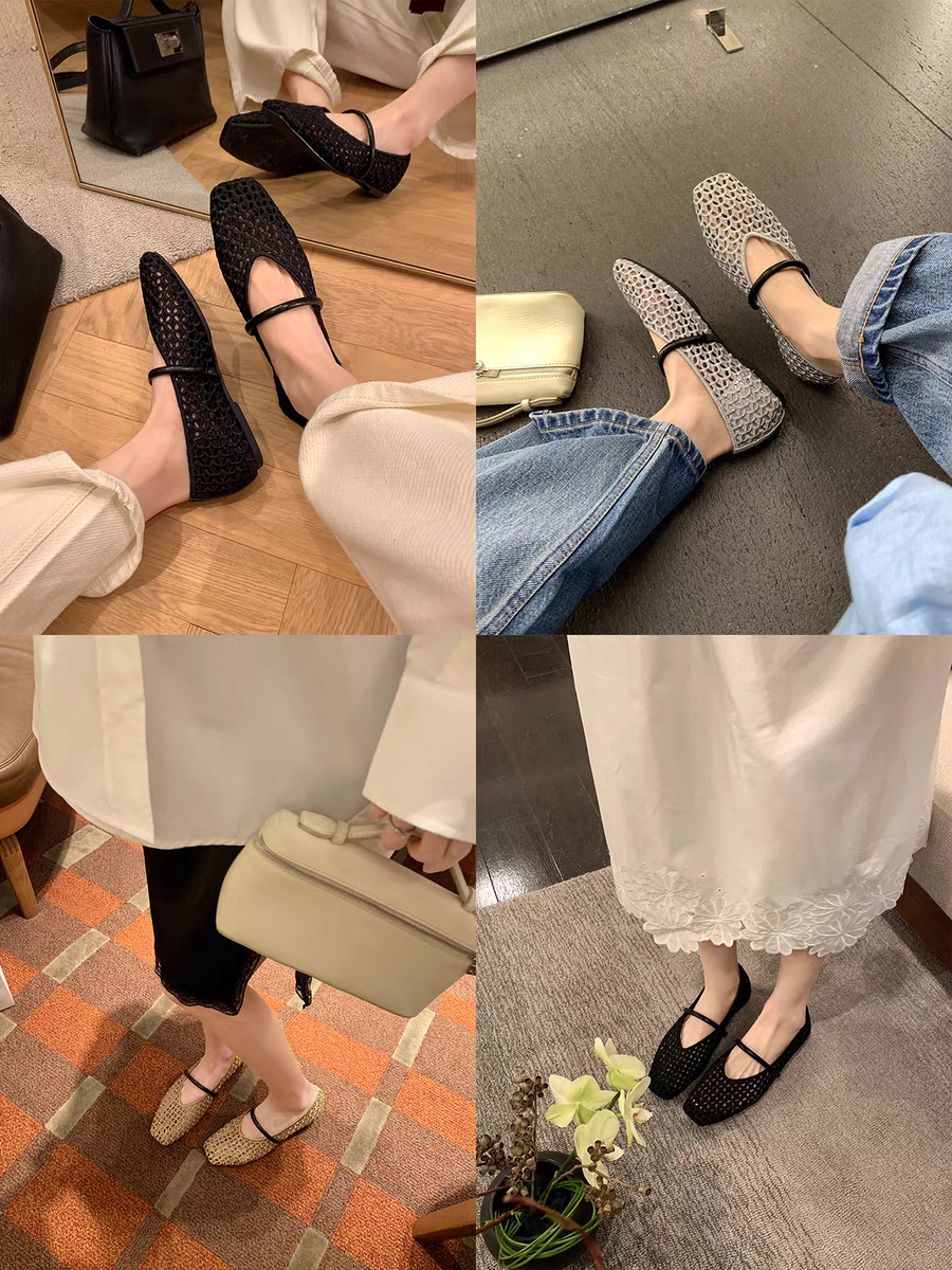✨可踩跟简直是懒人福音~ 【缕空+编织+玛丽珍】ROAADN时尚镂空编织一字带玛丽珍 特别推荐给不喜欢露脚趾穿凉鞋的姐妹