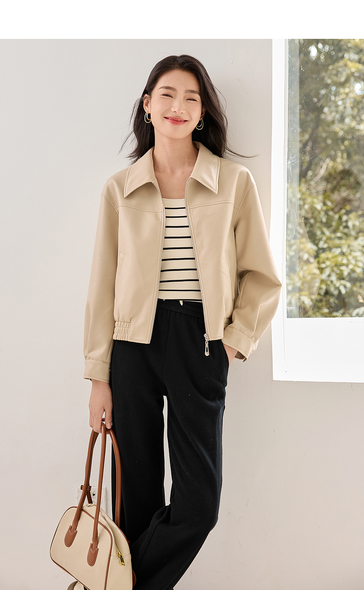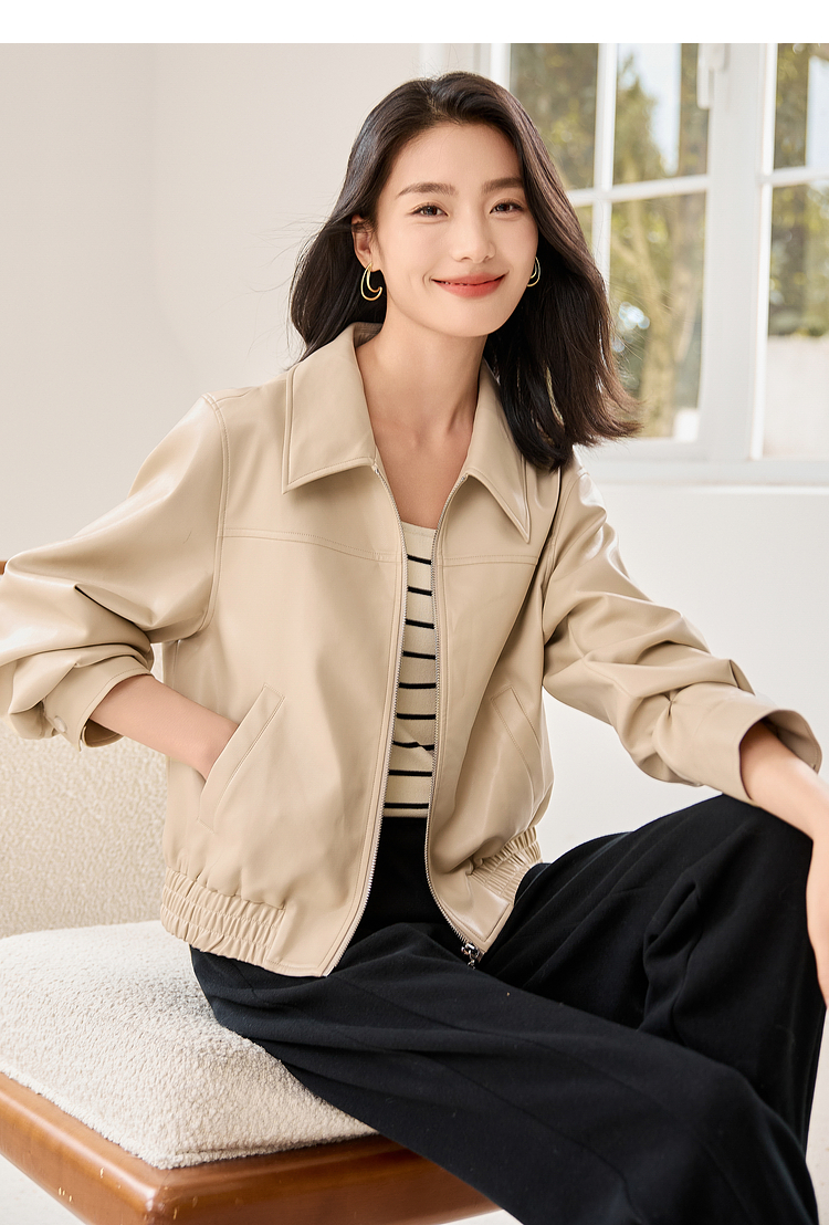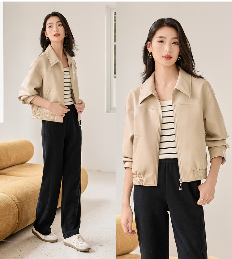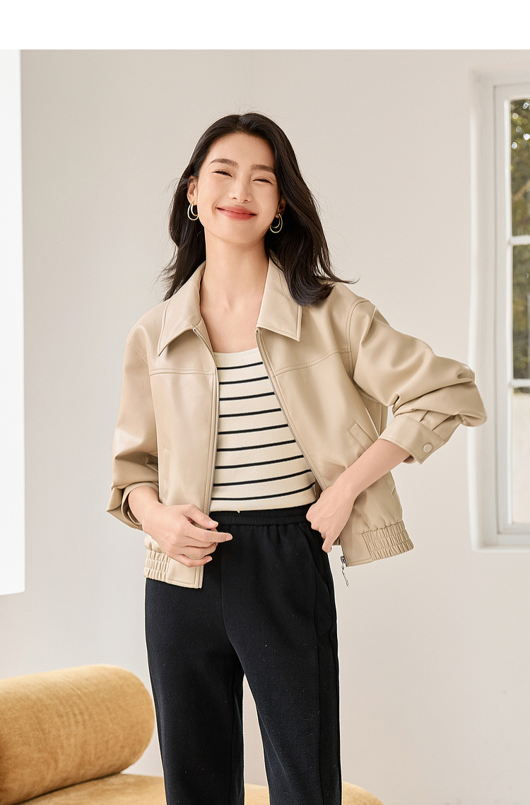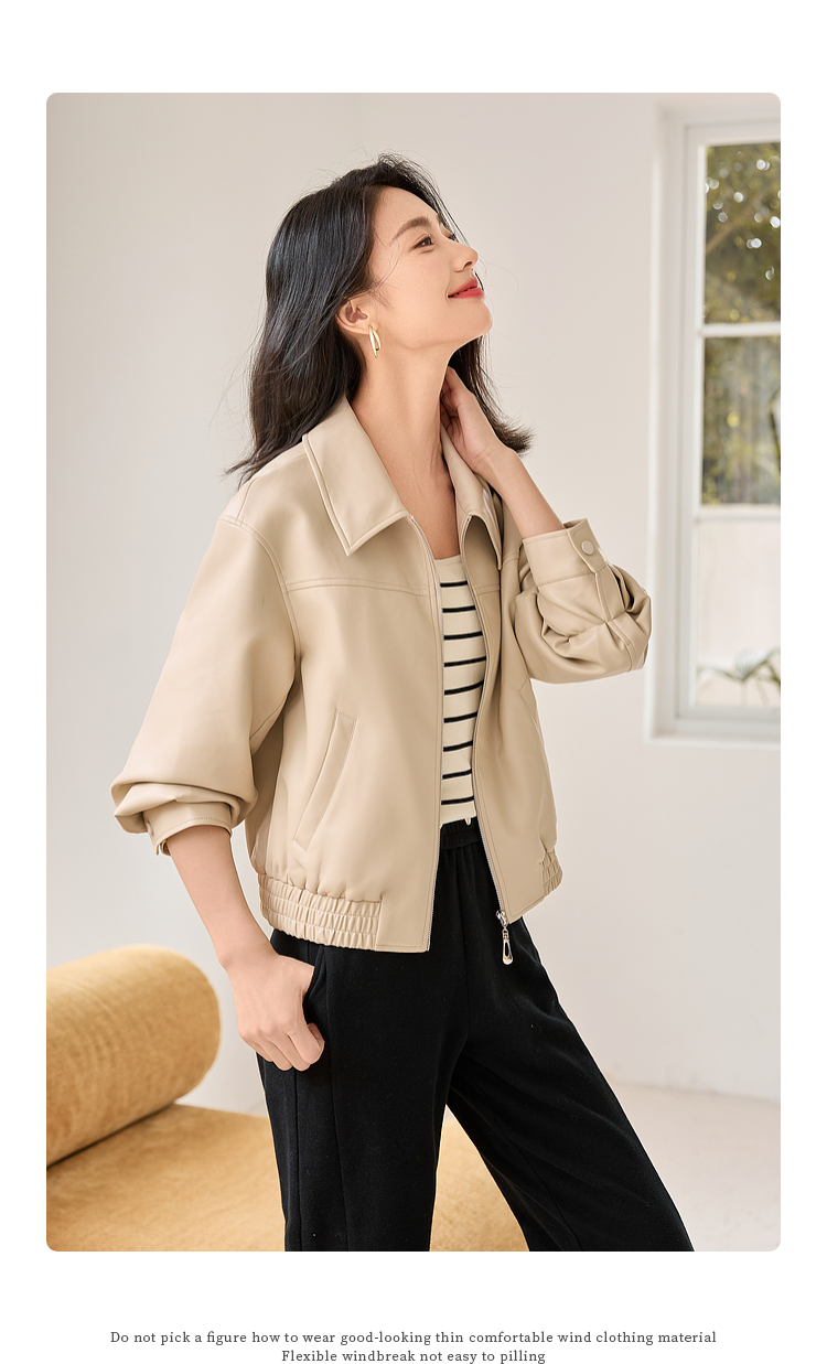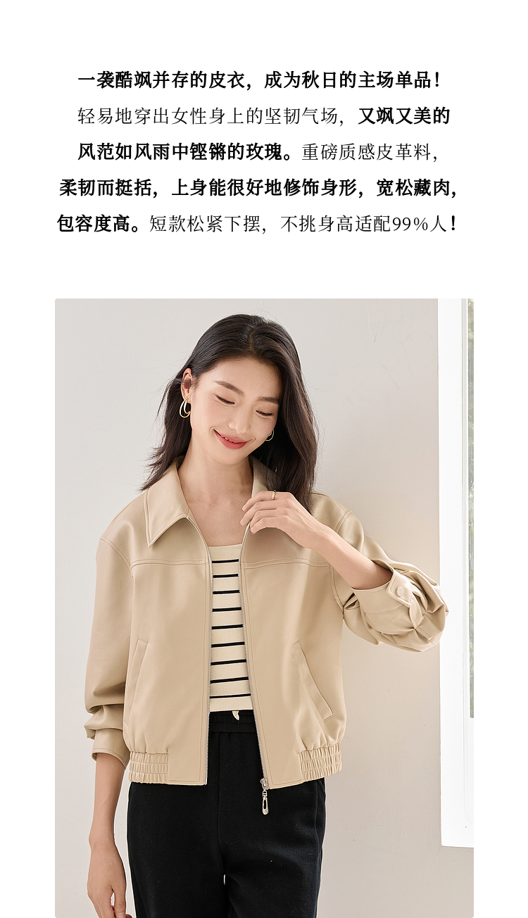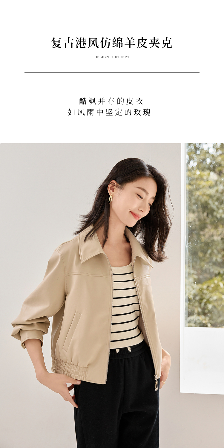 【年货节】熙世界复古港风皮衣外套小个子2025年秋季新款短款翻领pu皮夹克