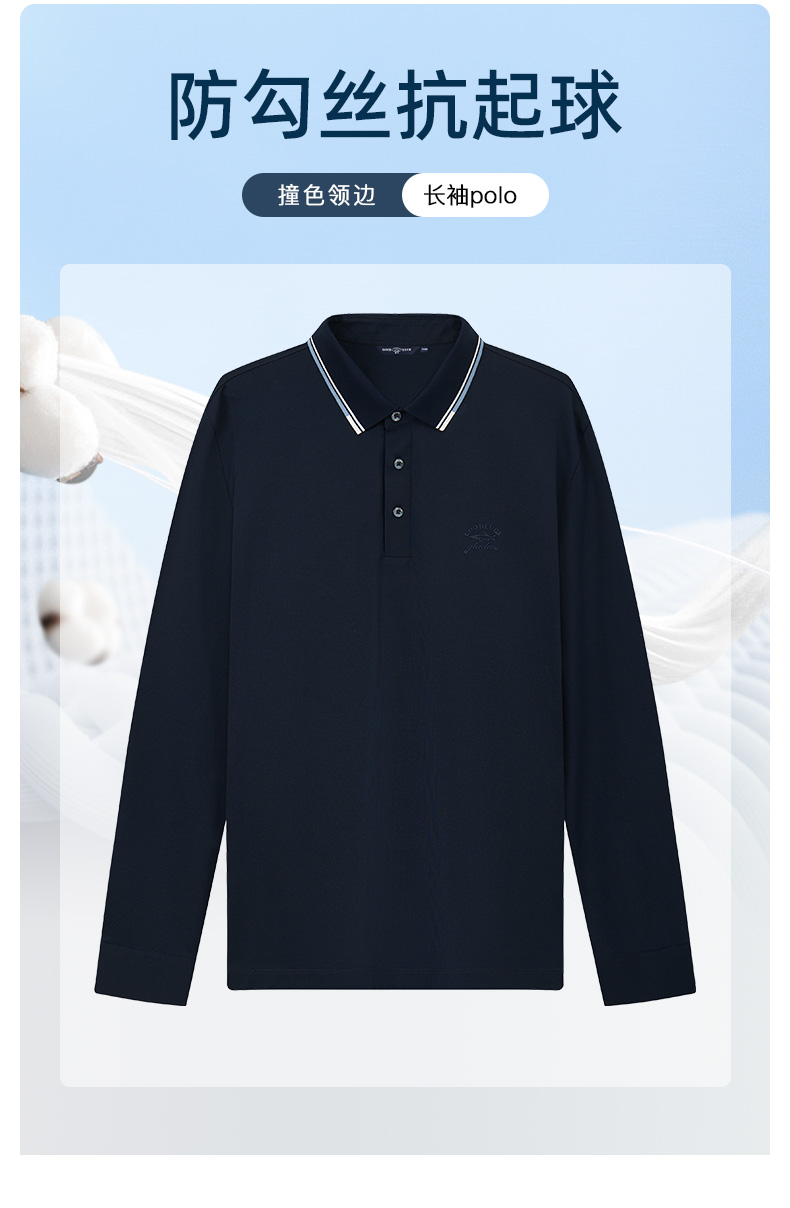 【抗起球】德鲨鲨鱼男装长袖POLO衫2026春新款休闲翻领T恤