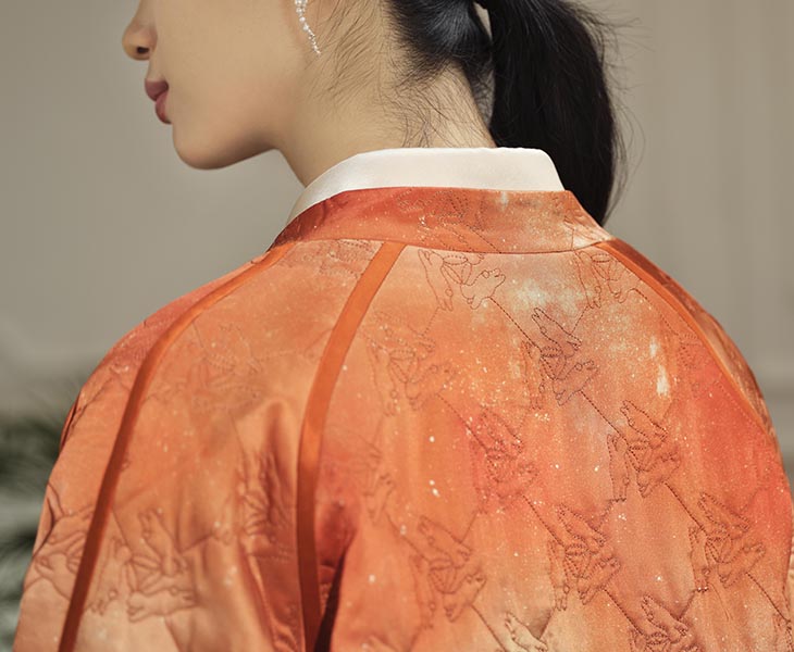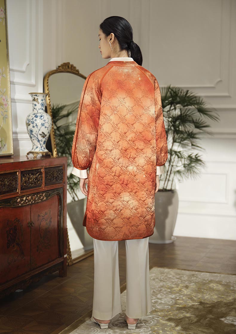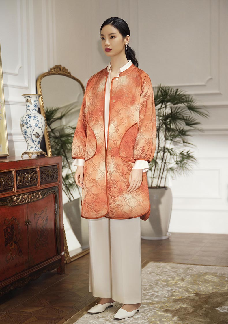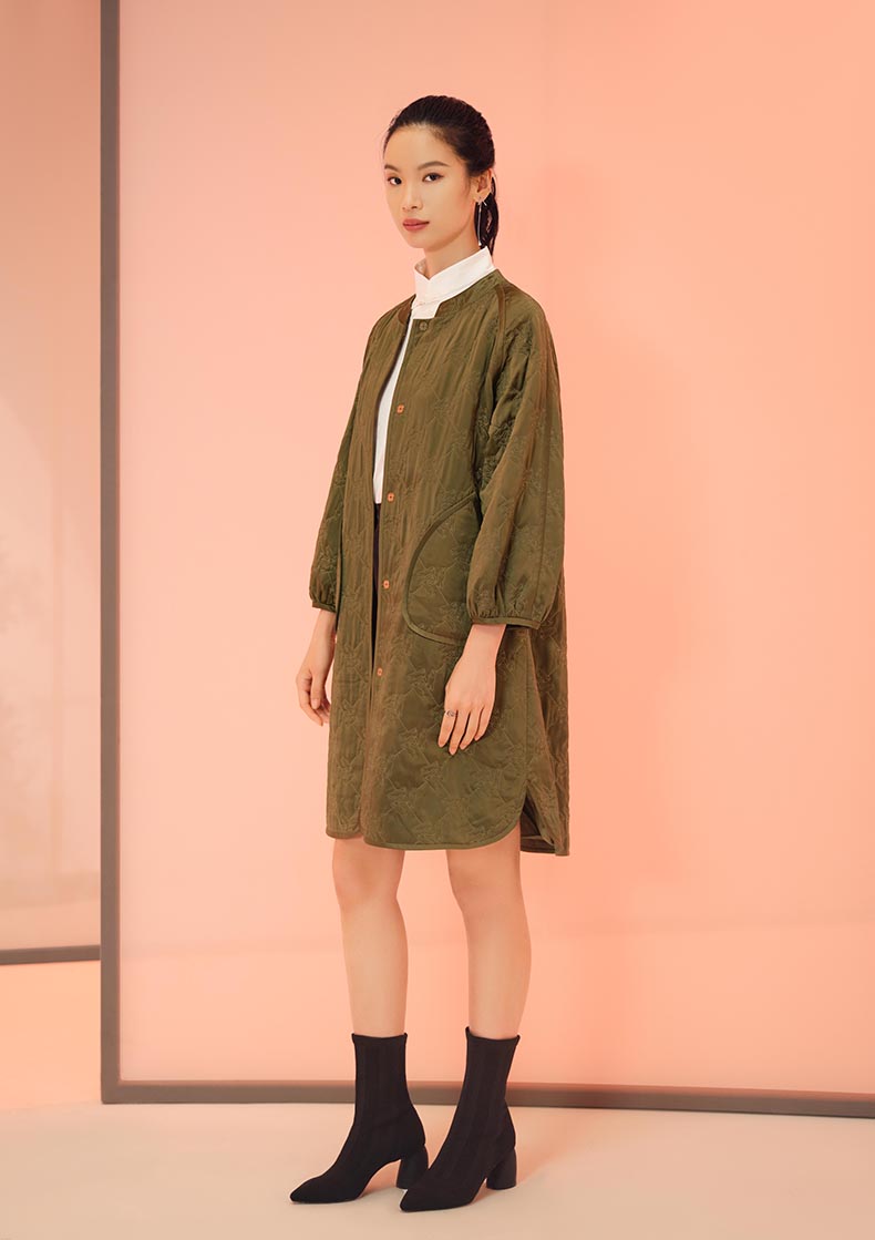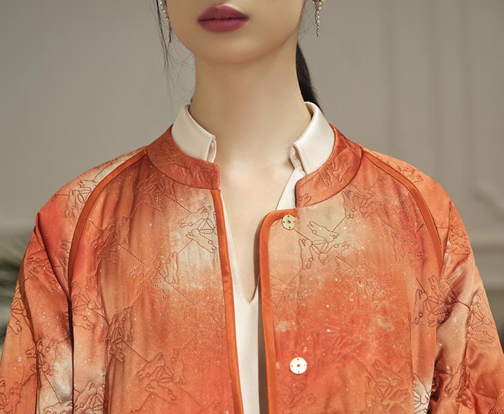 经典小立领造型,贴合颈部曲线,平添端庄典雅气质