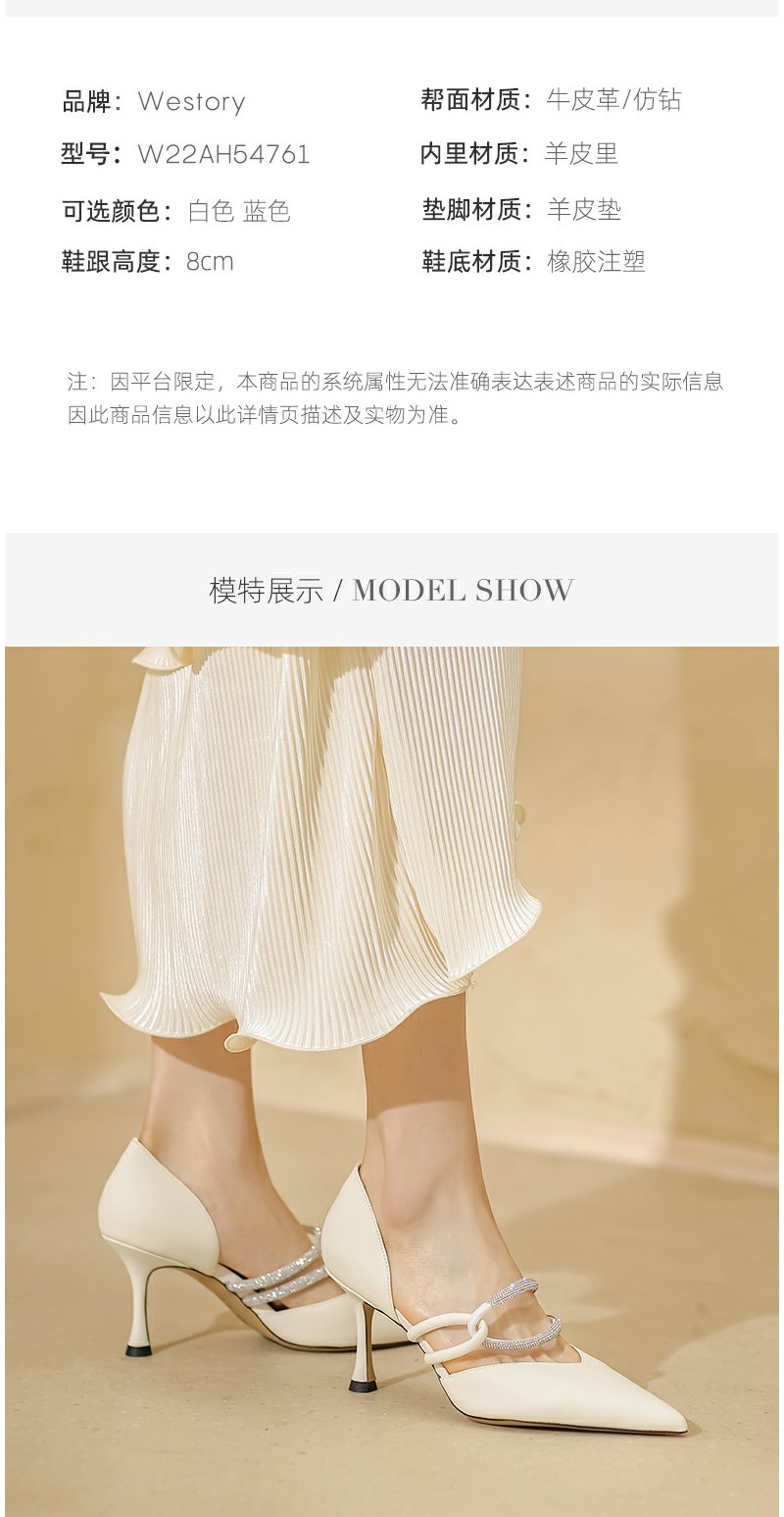 wwestory2022年夏新款小众设计气质名媛尖头细高跟单鞋女W22AH54761